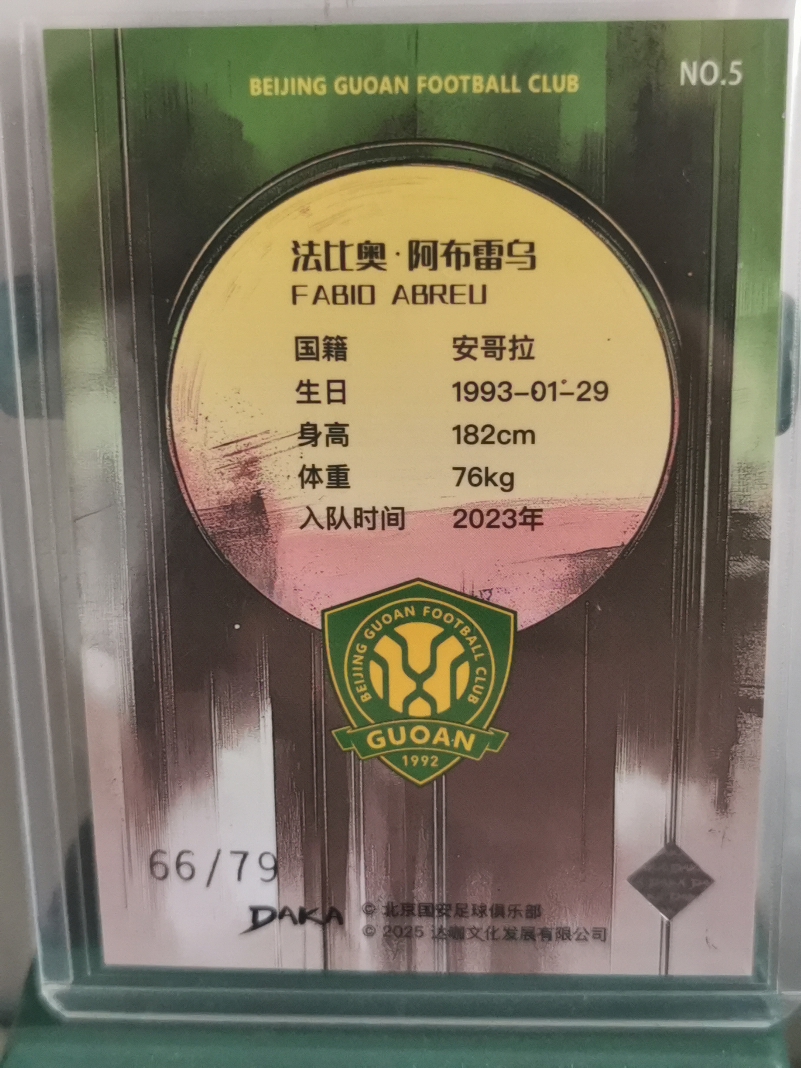 2025 DAKA 北京中赫国安足球俱乐部 法比奥 北京国安队盒 法比奥 BASE卡 银折 66/79编 实卡精美 收藏 凑套必备!
