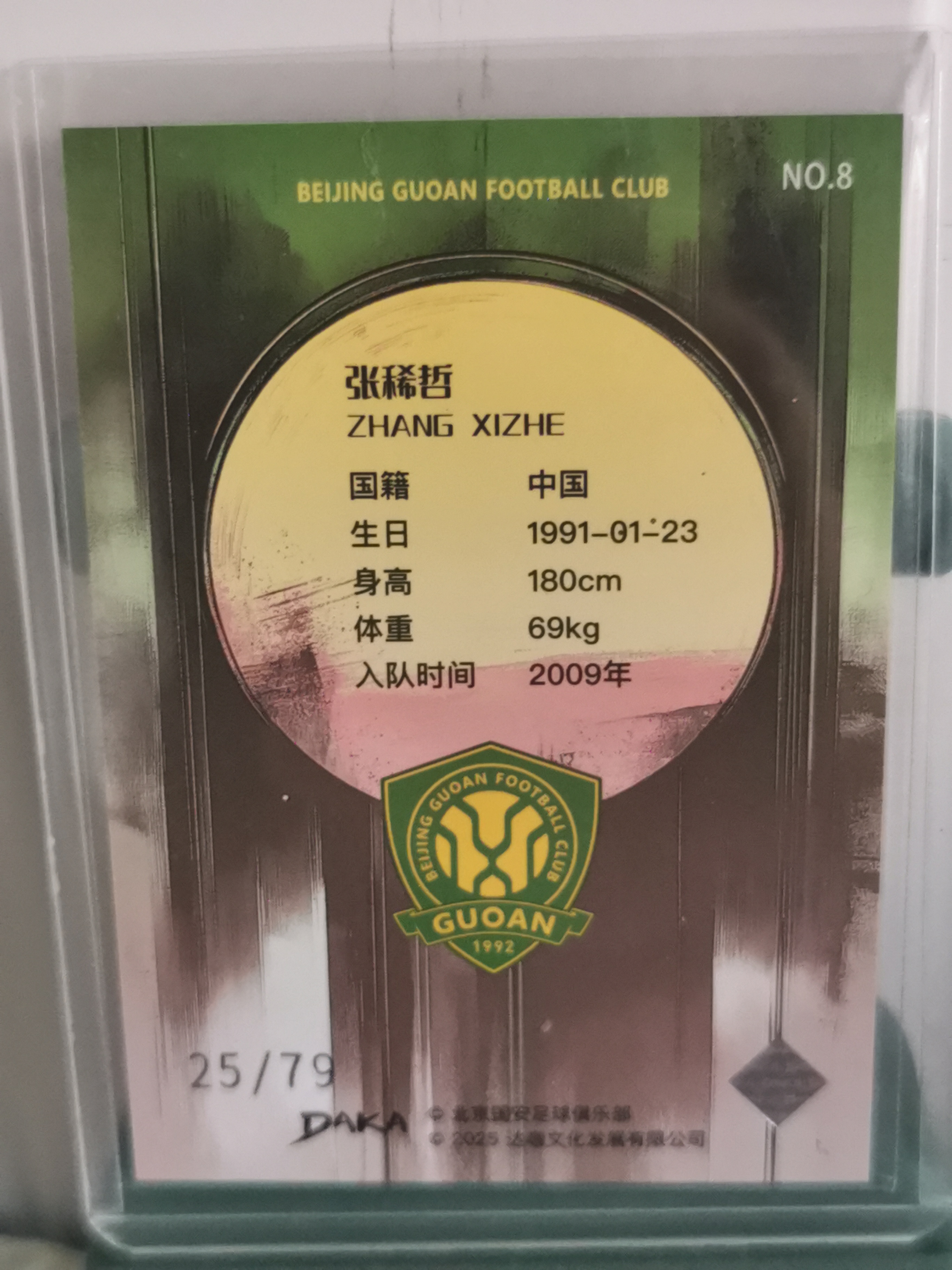 2025 DAKA 北京中赫国安足球俱乐部 Zhang Xizhe 北京国安队盒 张稀哲 BASE卡 银折 25/79编 实卡精美 收藏 凑套必备!