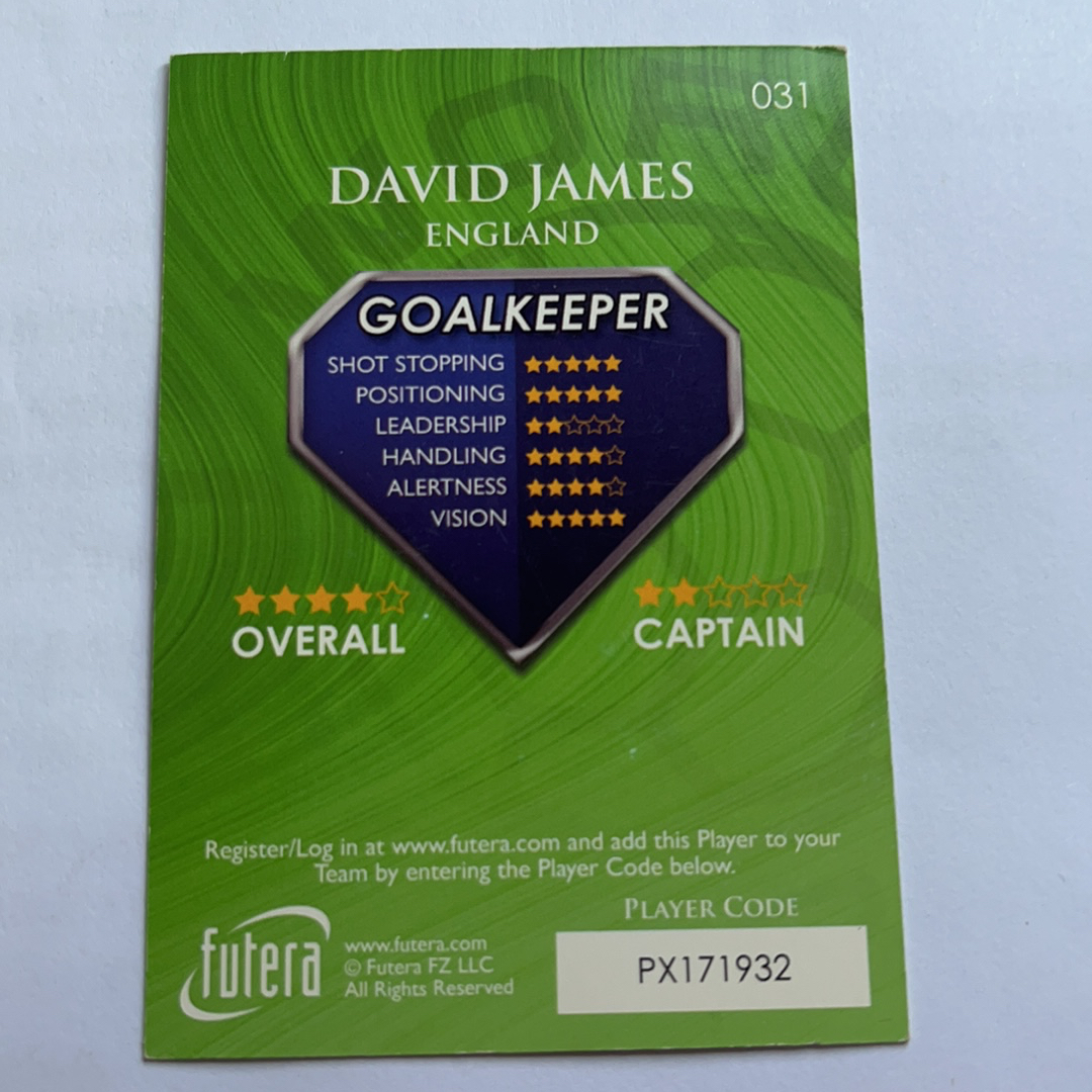2008 Futera 国家队 知名球星 David James 德国 经典老卡 福特拉 球星卡