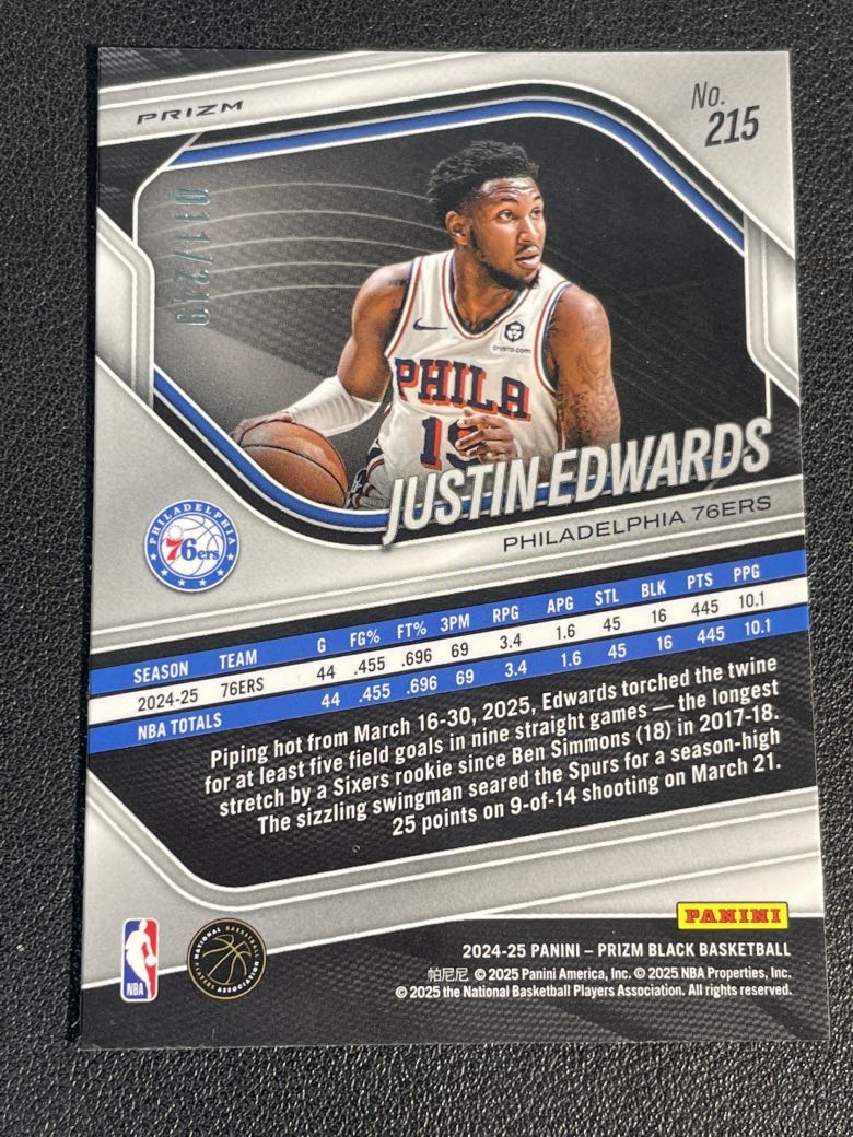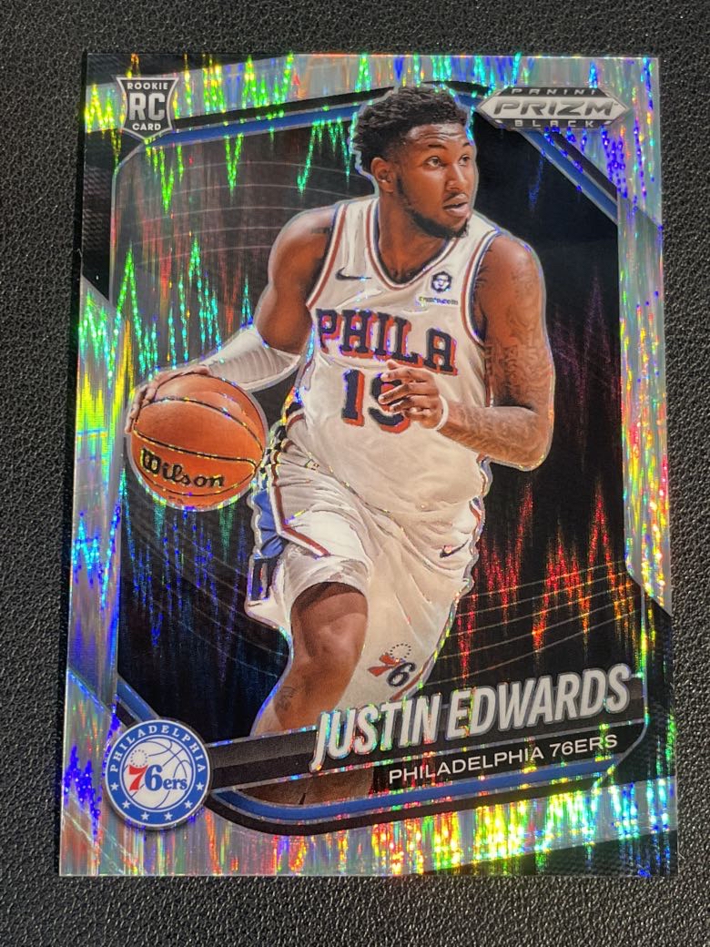 2024-25 Panini Prizm Black Justin Edwards RC 726 贾斯丁 爱德华兹 76人 新秀 折射 银折 银瀑布折 249编 微瑕如图 卡品如图 尖叫代拍 pink