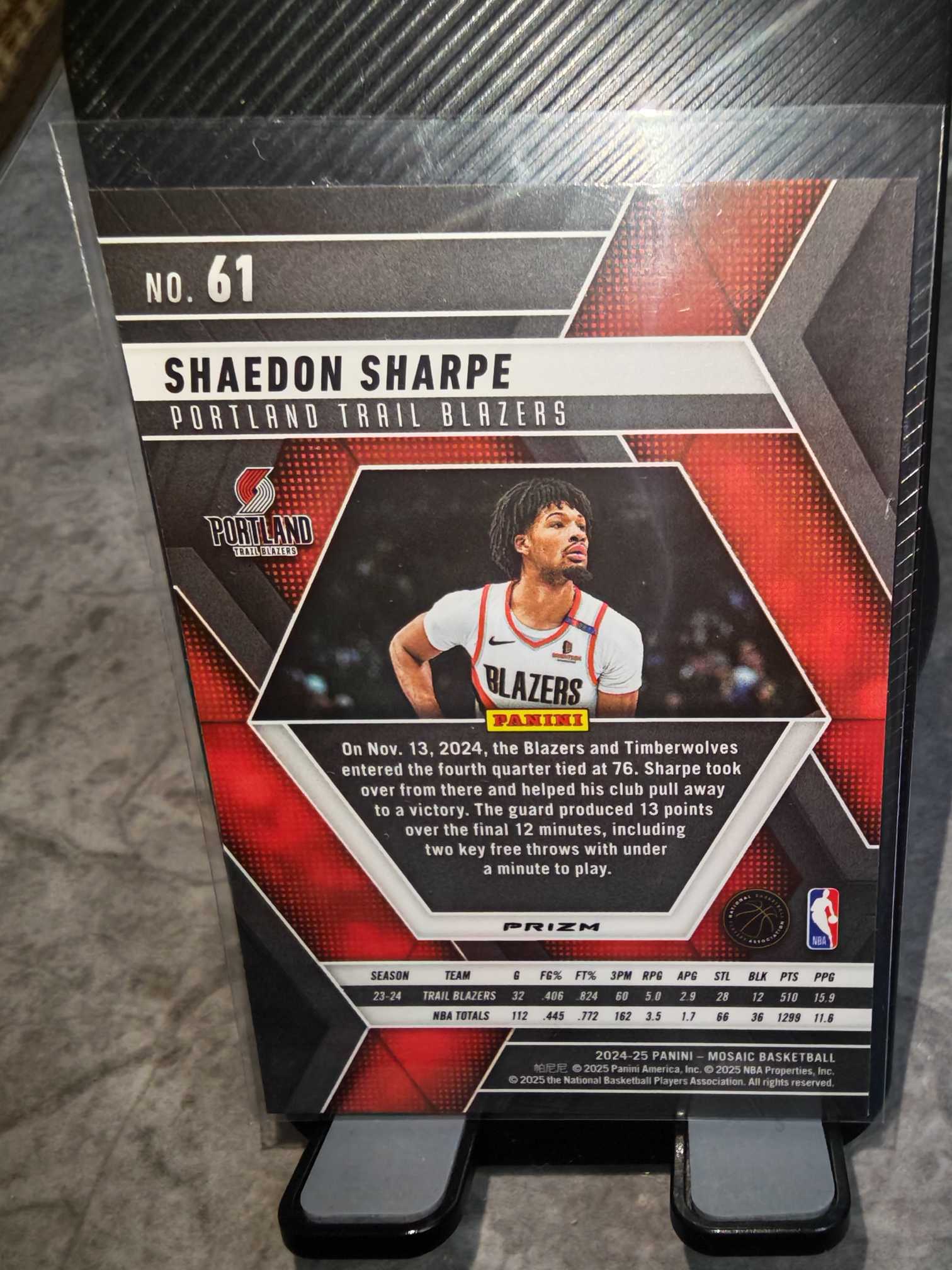 2024-25 Panini Mosaic Shaedon Sharpe 开拓者 谢登 夏普 一级base 镭射折 折射 卡品如图 【猛哥免费代卖】