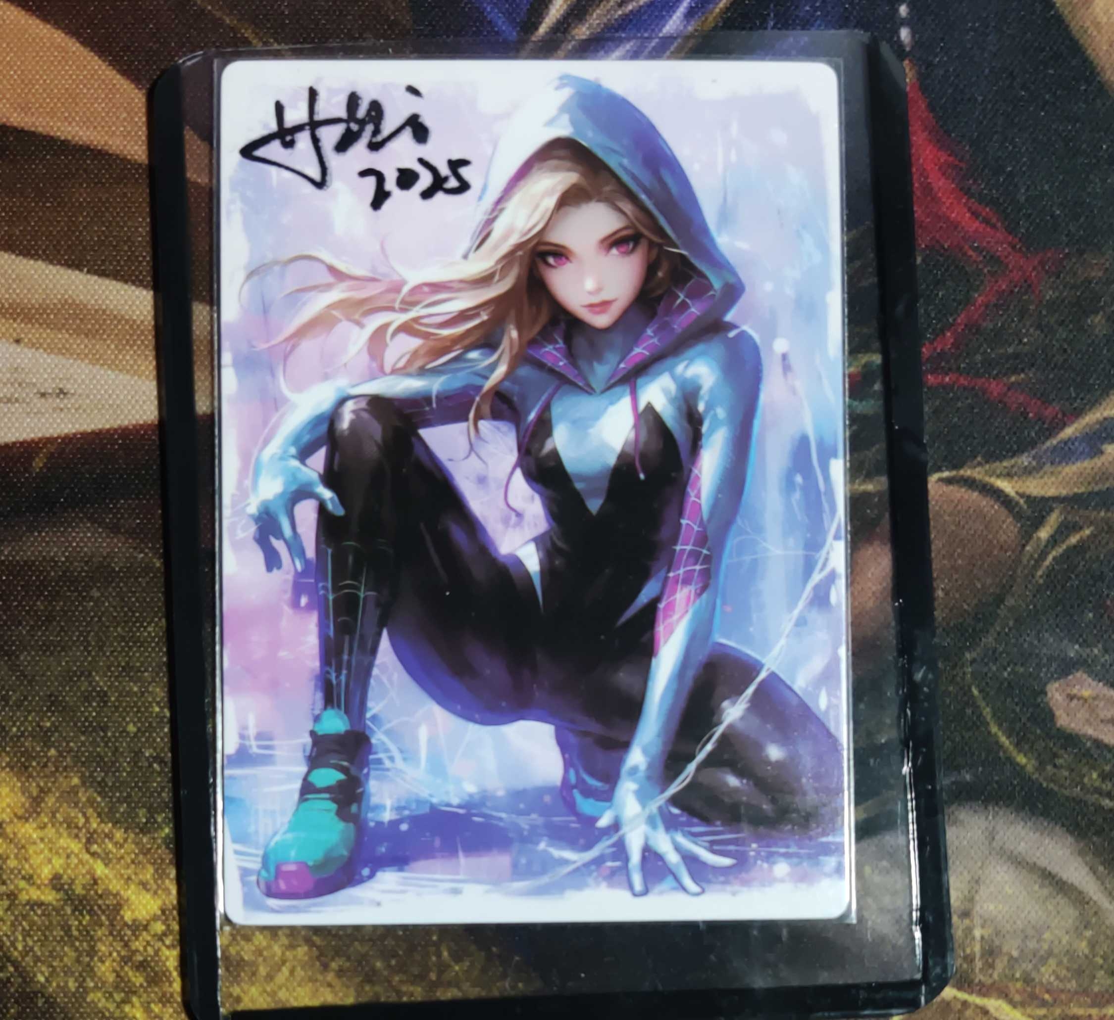 漫威蜘蛛侠格温粗闪特卡画师亲签墨迹有染
