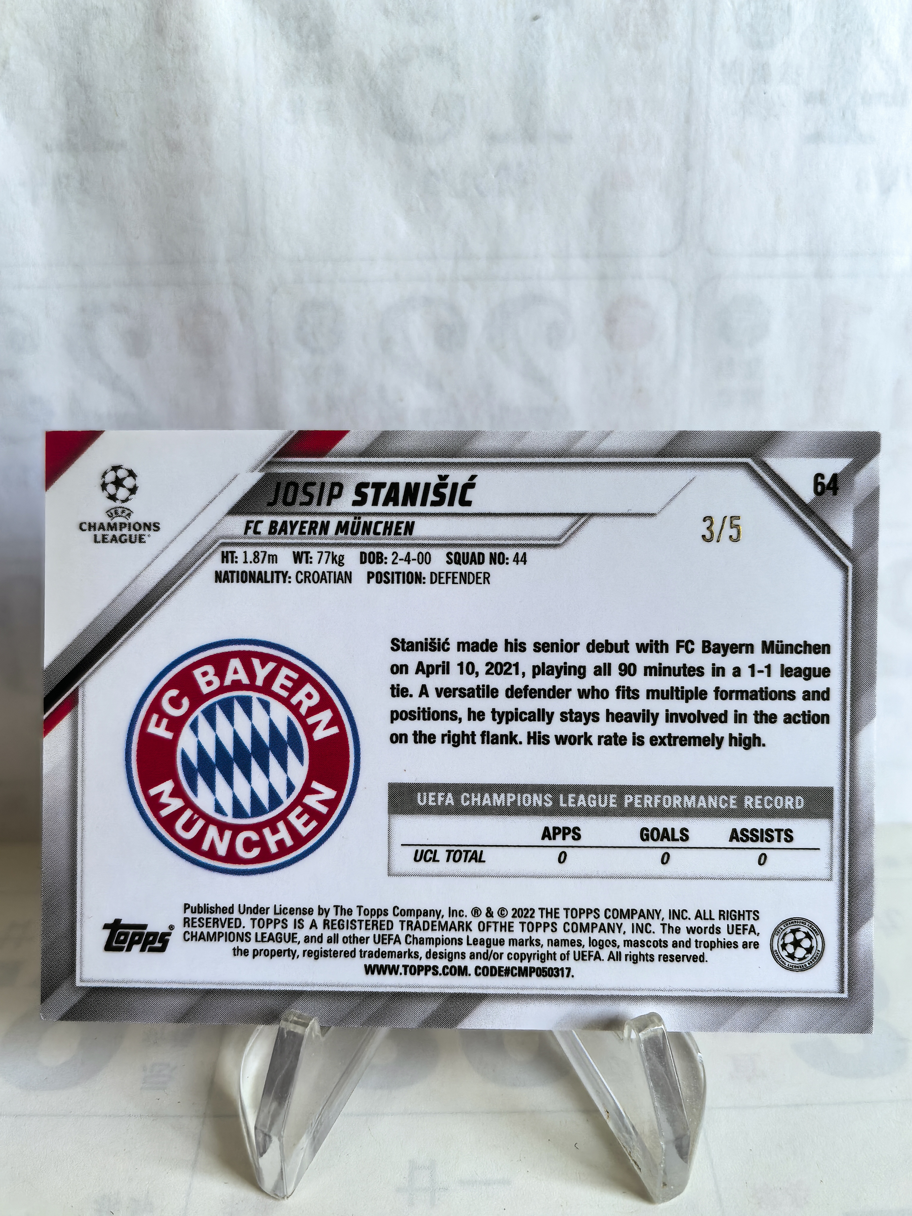 2022 Topps Chrome stanisic RC 欧冠 tc 碎冰 5编 同队色 jersey colur 德甲 克罗地亚 拜仁慕尼黑 斯塔尼西奇 新秀 微瑕如图