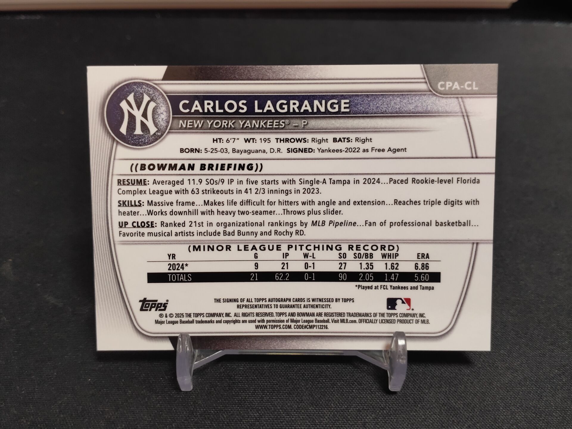 【浩行拍卖 截标预付82%】2025 topps bowman chrome carlos lagrange 纽约扬基队 卡洛斯 1st 签字 卡签  专收必备 瑕疵看图1「译闻123」1005P01緲