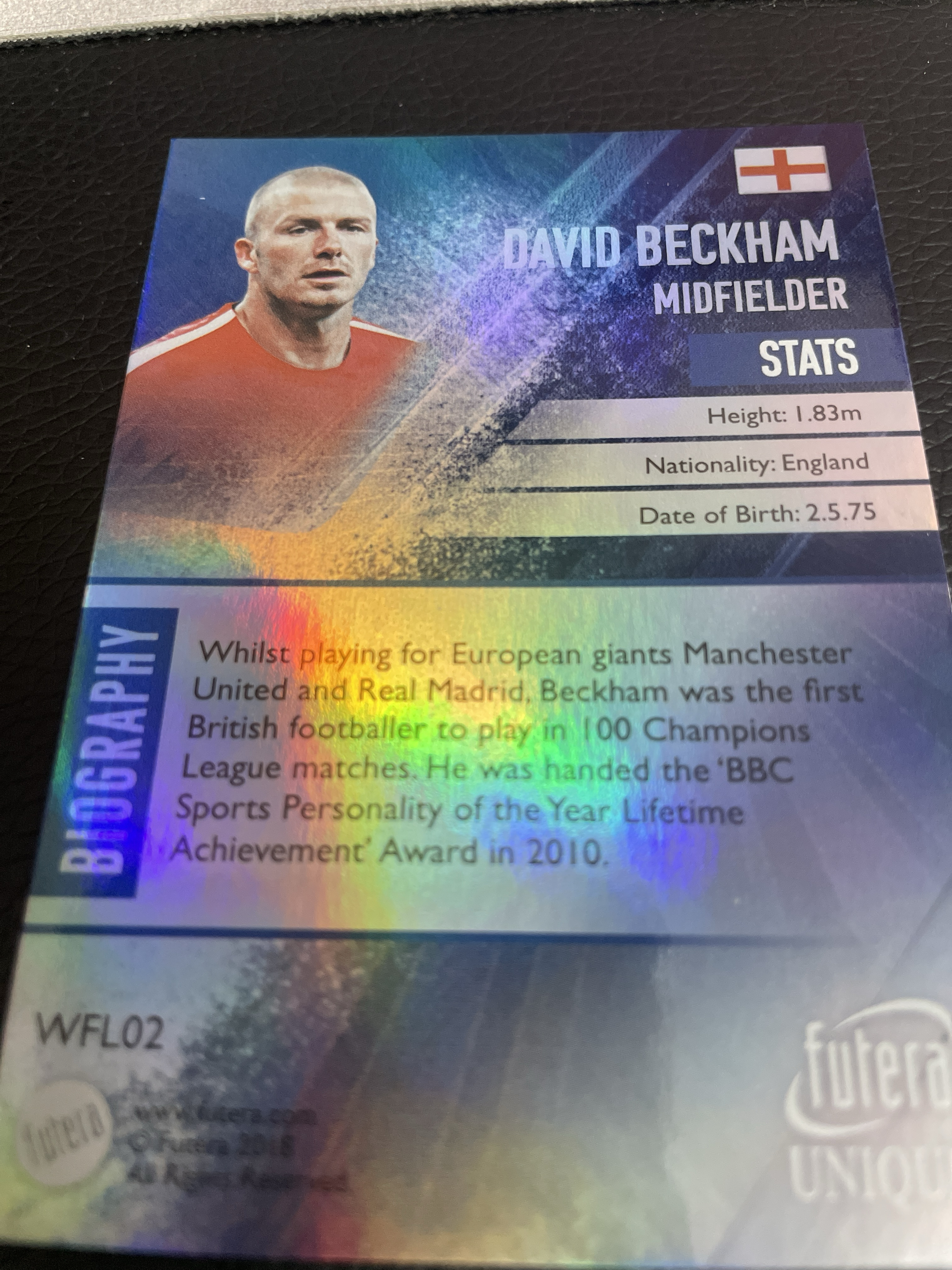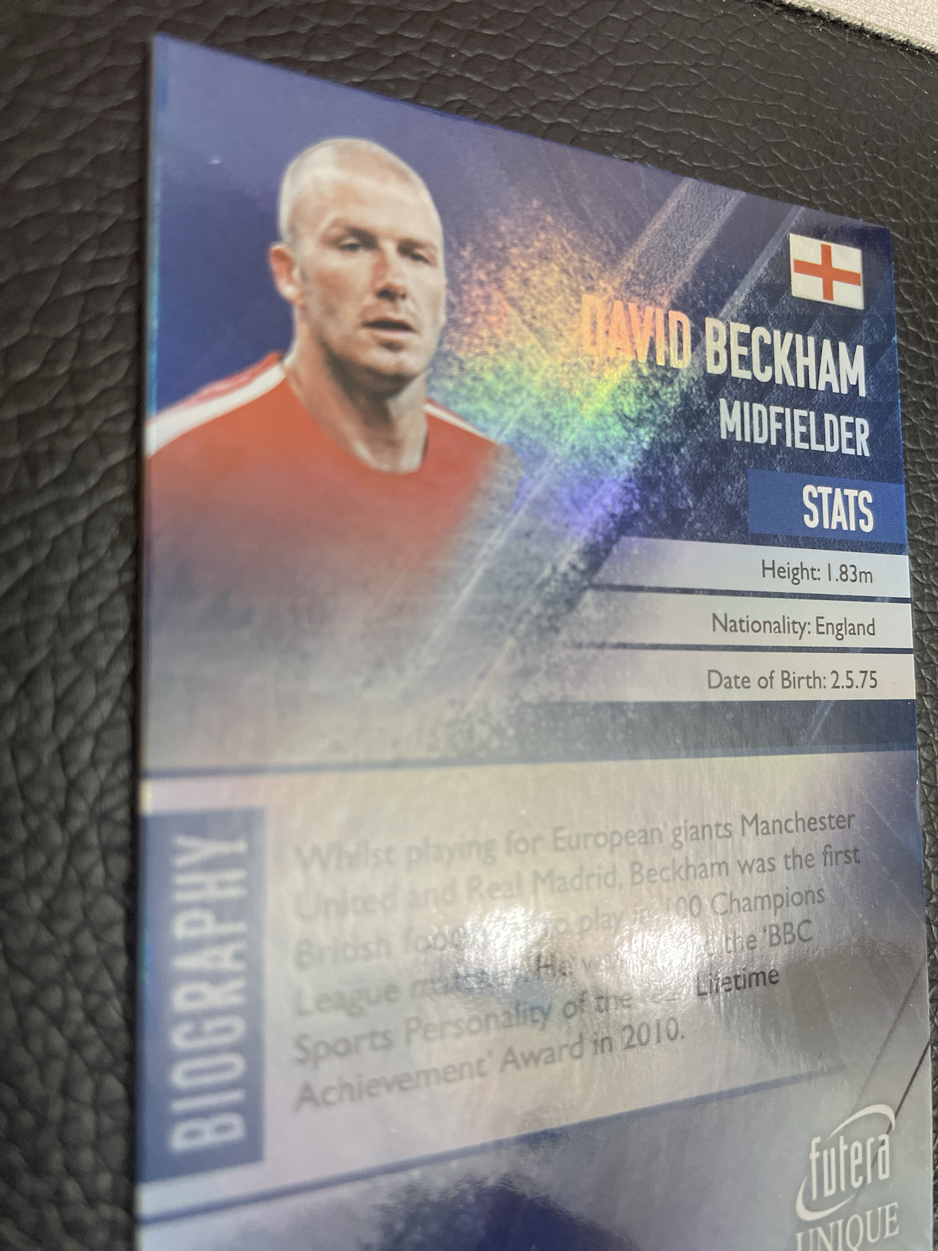 2018 futera unique福特拉 小贝 万人迷 贝克汉姆 7号传奇 曼联 英格兰国家队 世界足球传奇 银卡 欧冠 英超冠军 卡品如图 老卡会有轻微镶嵌印痕 介意勿拍