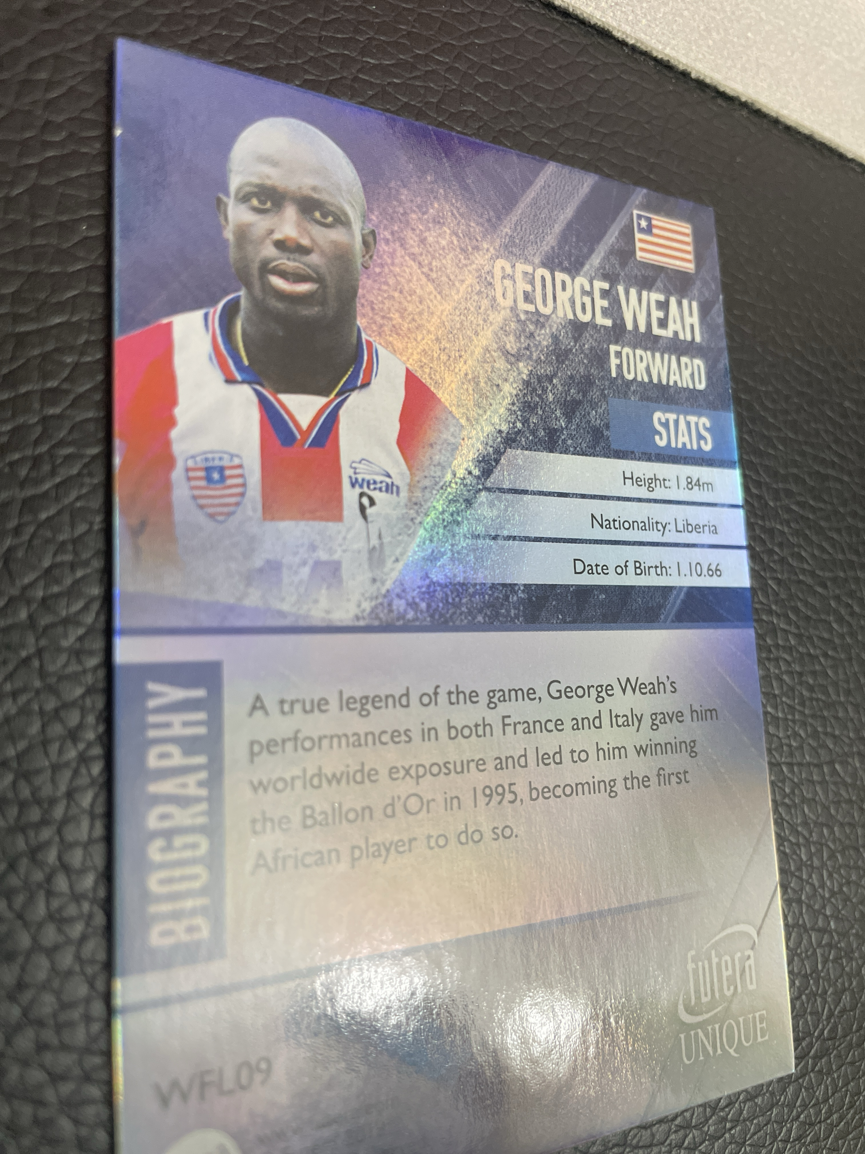 2018 futera unique福特拉 乔治维阿 利比里亚总统 国家队 米兰 世界足球传奇 银卡 欧冠 世界足球先生 卡品如图 老卡会有轻微镶嵌印痕 介意勿拍