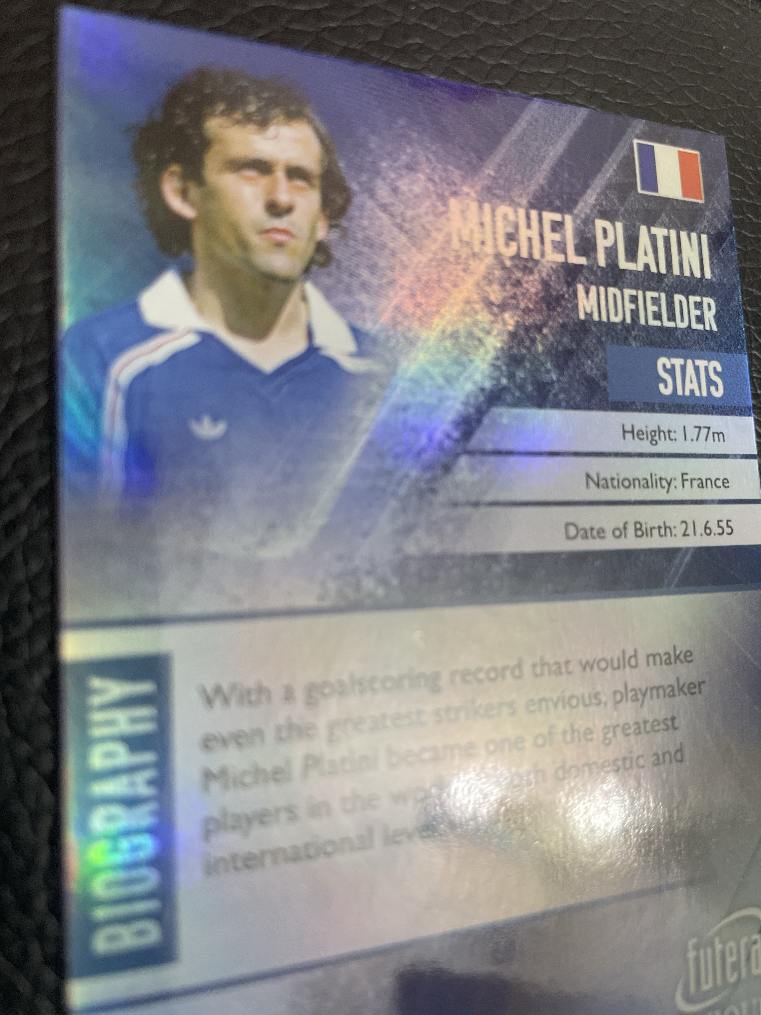 2018 futera unique福特拉 普拉蒂尼 法国国家队 欧足联主席 世界足球传奇 银卡 欧冠 世界杯 卡品如图 老卡会有轻微镶嵌印痕 介意勿拍