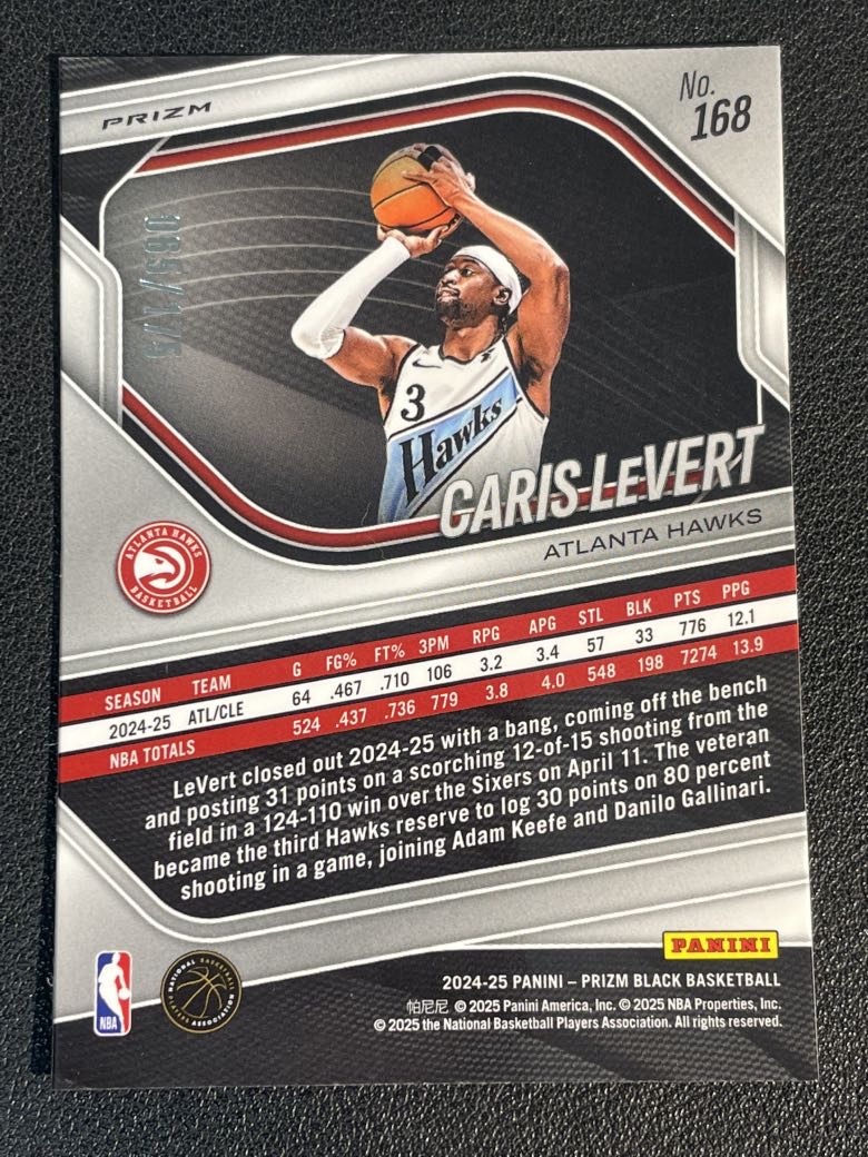 2024-25 Panini Prizm Black Caris LeVert 755 卡里斯 勒夫特 老鹰 折射 白折 175编 实卡精美 卡品如图 尖叫代拍 pink