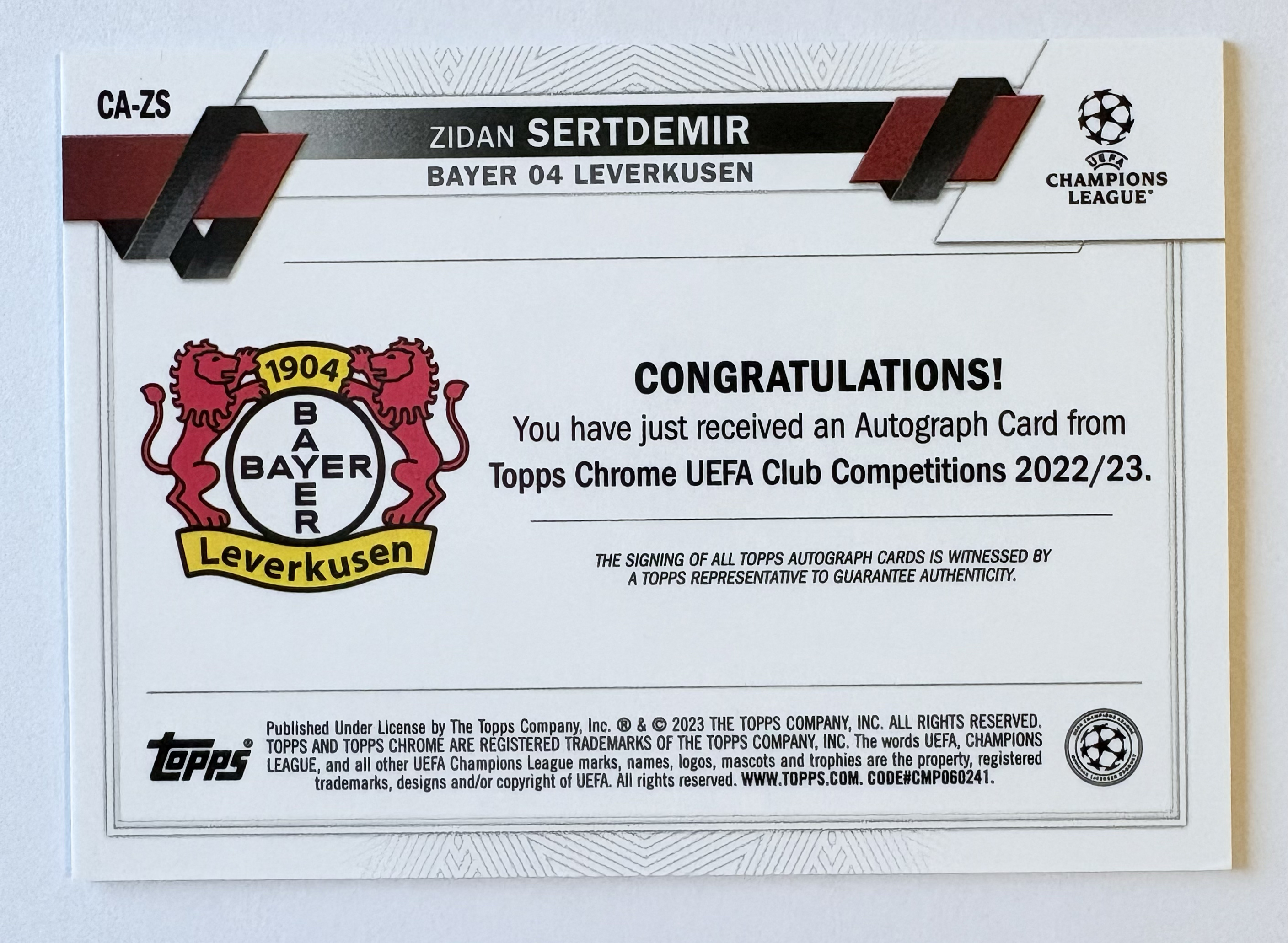 2023 Topps Chrome Zidan Sertdemir TC 欧冠系列 勒沃库森 齐丹 齐达内 塞尔特代米尔 银折 签字 小牛 未来可期 德甲 卡品如图 人迷队迷专收