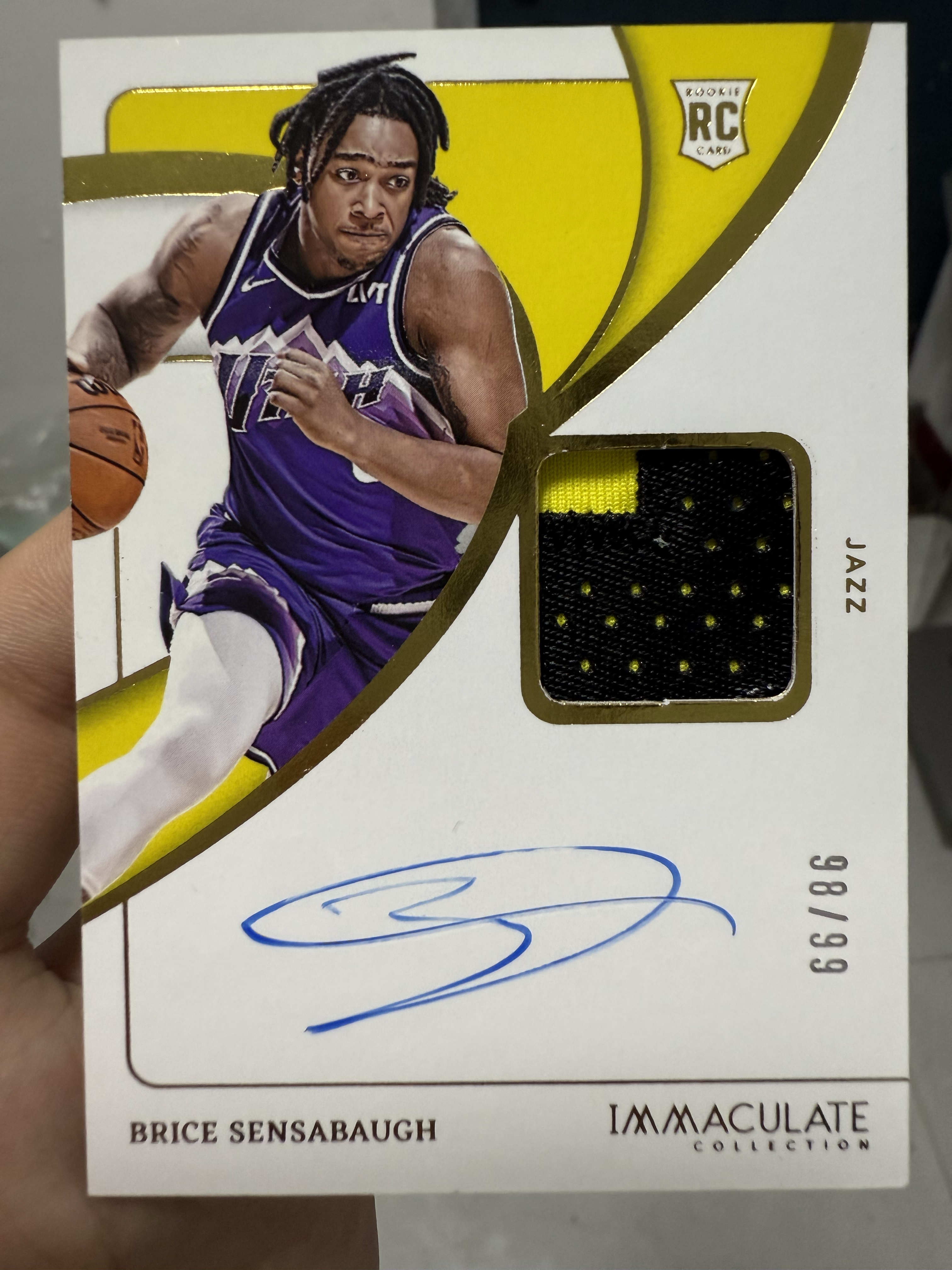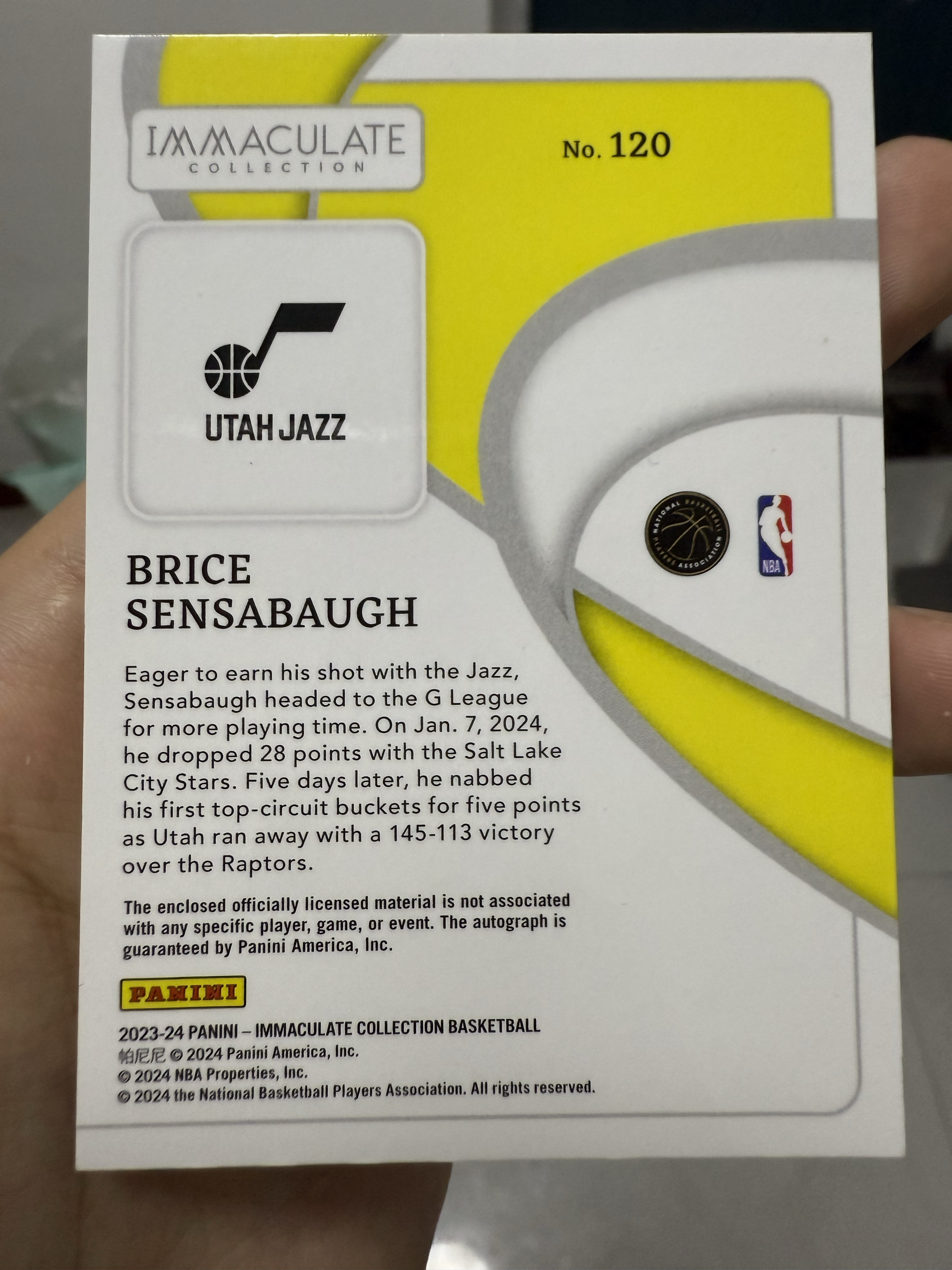 2023-24 Panini Immaculate Brice Sensabaugh RC 森宝 布莱斯 森萨博 爵士 新秀 爱咪咪系列 99编 小窗切割物料 卡签 签字 卡品如图