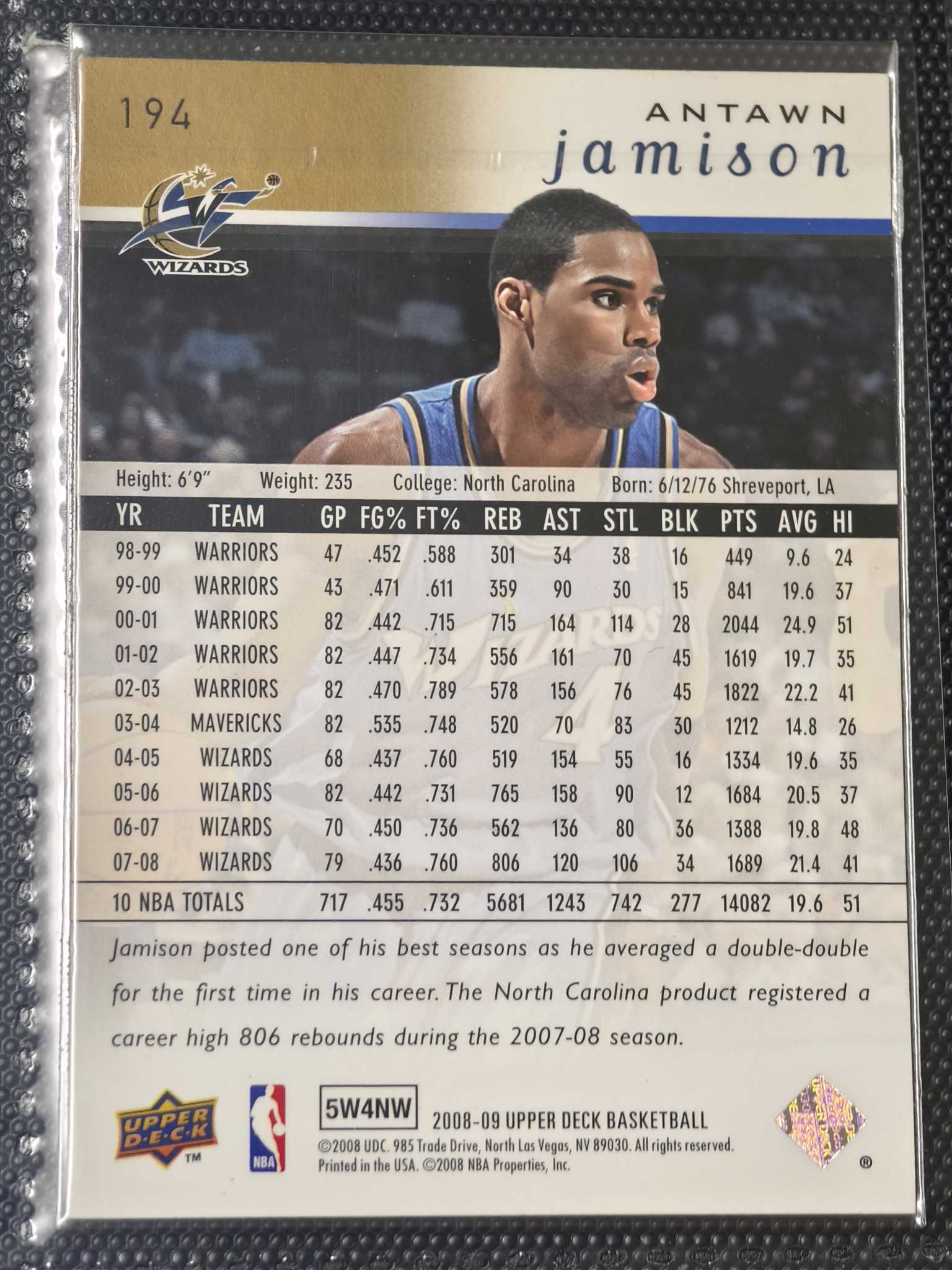 2008-09 Upper Deck Basketball Antawn Jamison 安托万贾米森 electric court 老特卡 大比例ssp 正面文字折射效果好看 奇才名宿 北卡乔丹师弟