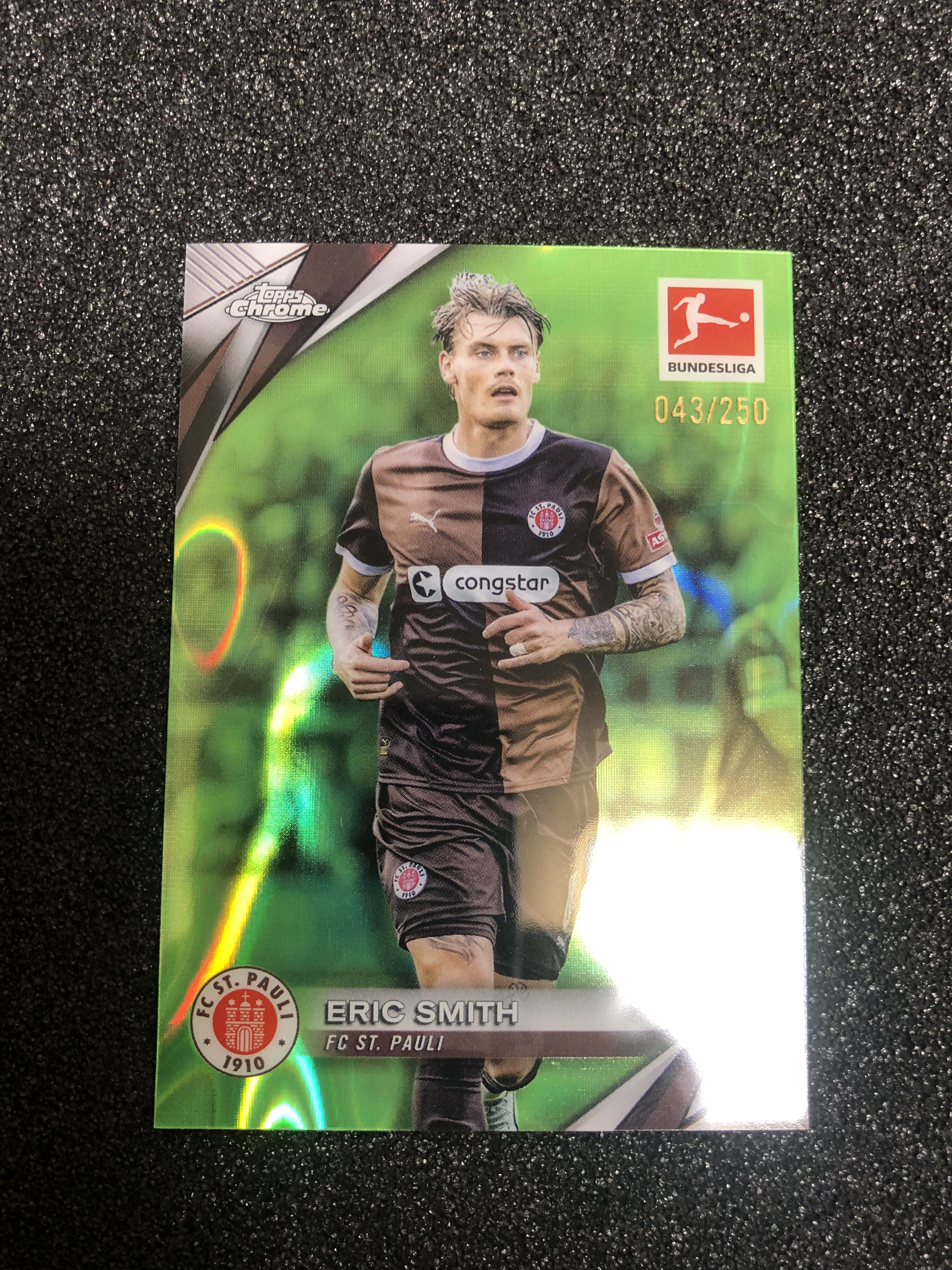 2024-25 Topps Chrome eric smith 德甲tc 埃里克-史密斯 瑞典 圣保利 250编 青波纹折 043/250 卡品如图 凑套收藏必备