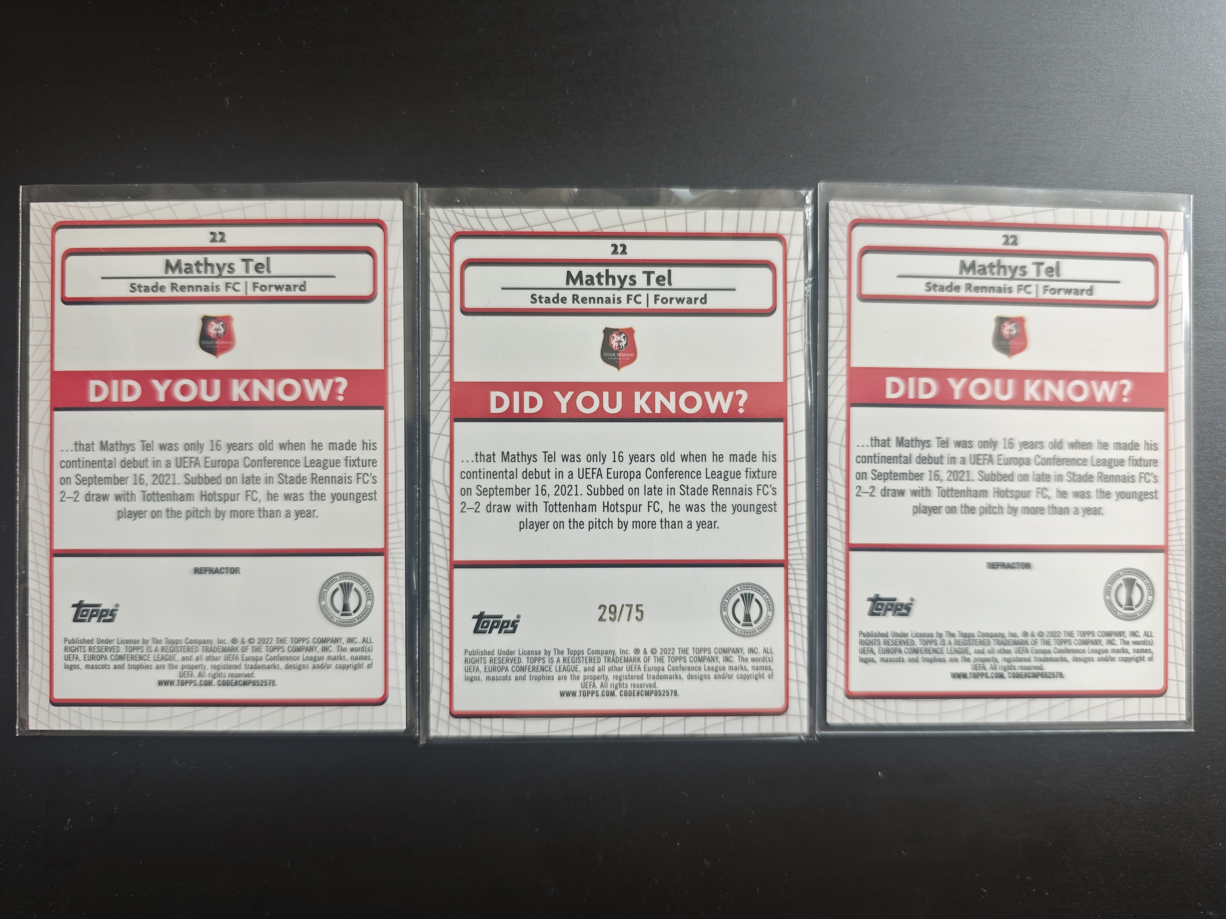 2021-22 Topps Merlin 梅林 Mathys Tel 特尔 雷恩 欧协 RC新秀 75编 蓝折 银折 拜仁 顺丰寄