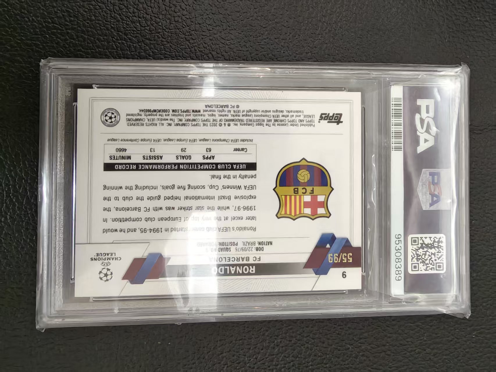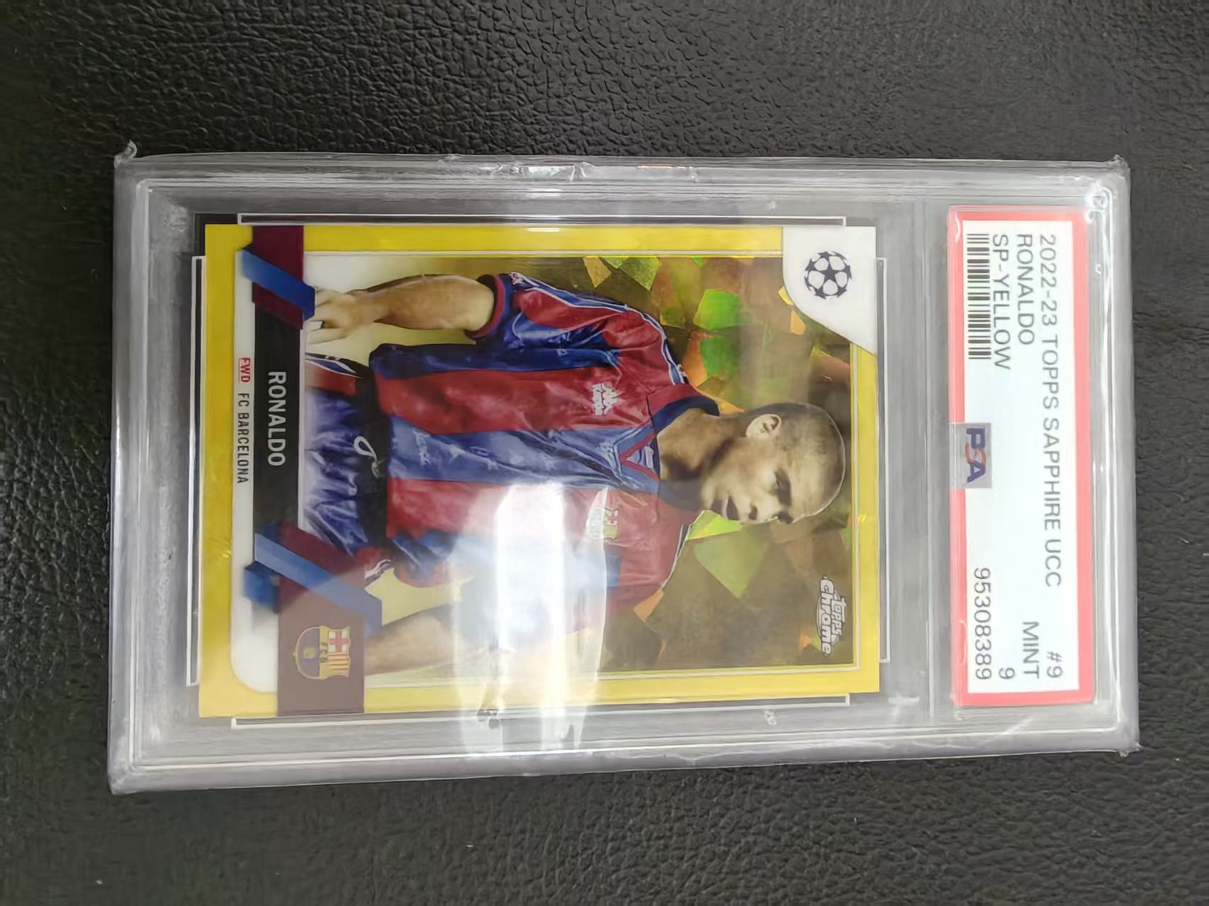 大罗 罗纳尔多 2022-23 Topps 蓝宝石 欧冠 /99编 变化版 大比例 SP 黄碎冰折 PSA 评级9分 ucc 外星人 巴萨选图 非常经典 值得收藏!