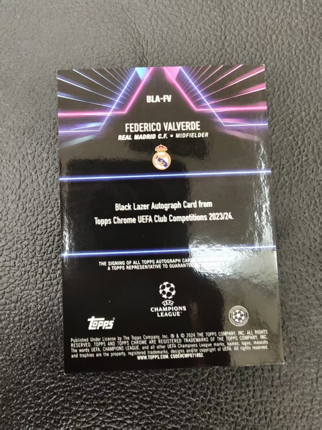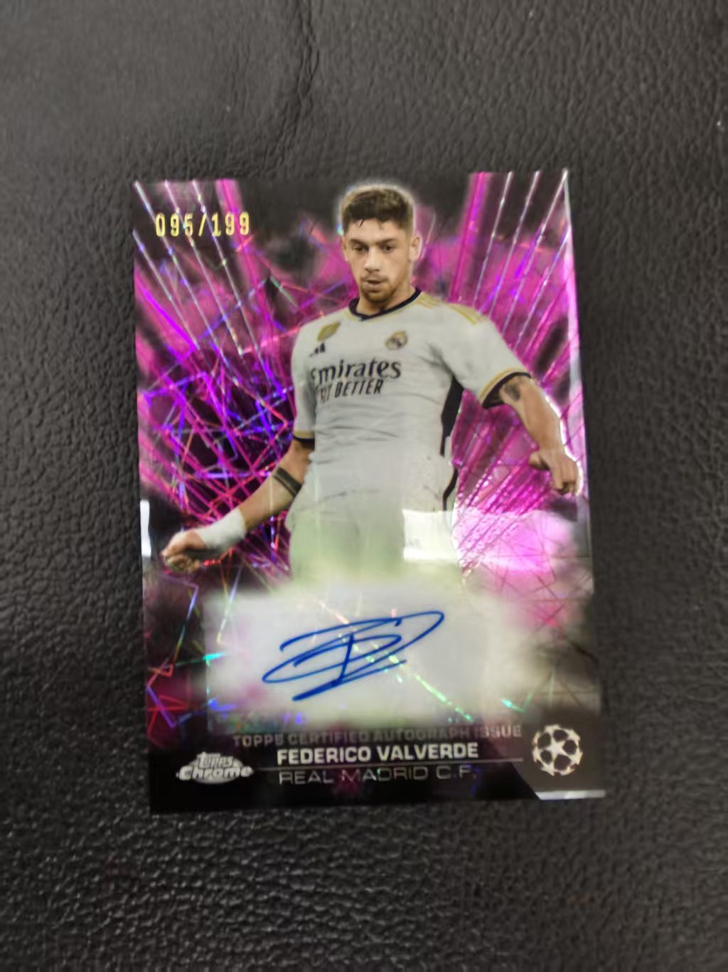 2023-24 Topps Chrome 欧冠 欧战 皇马 皇家马德里 乌拉圭 Valverde 巴尔韦德 镭射特卡 粉折 199编 签字 实卡好看 收藏必备