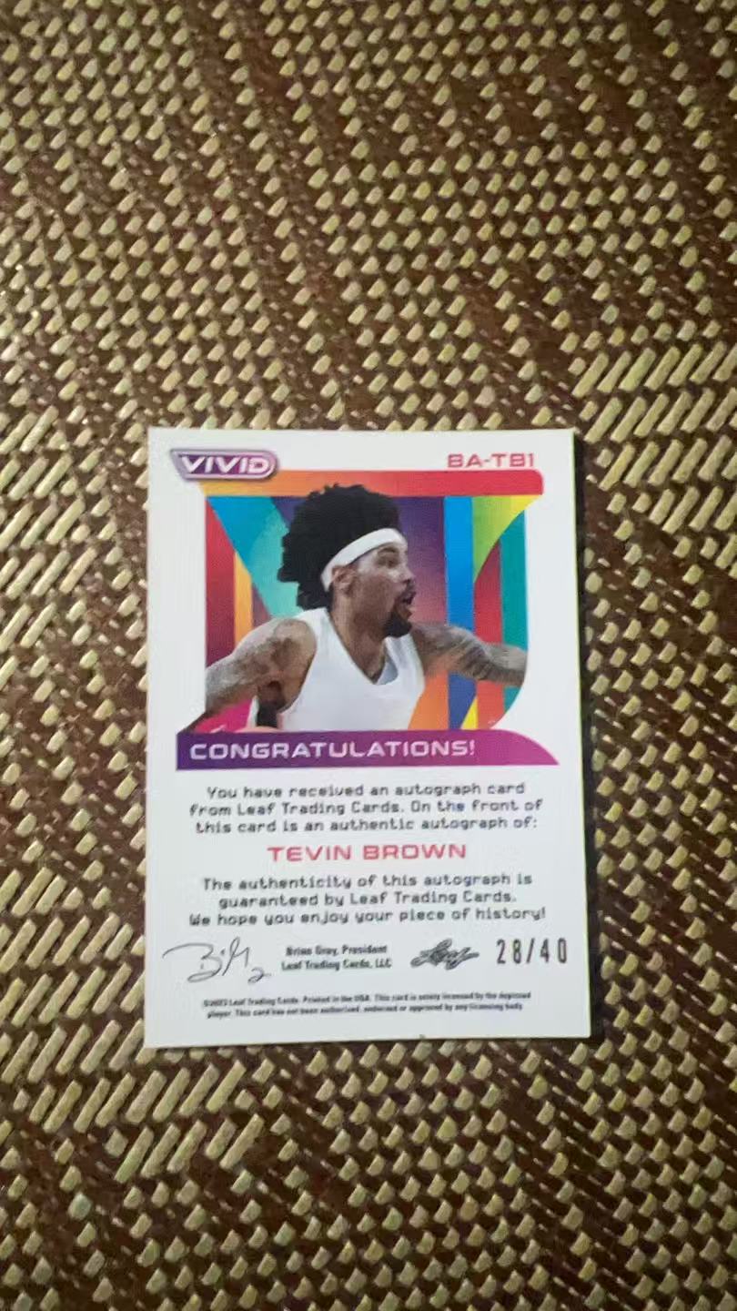 2023 Leaf leaf Tevin Brown RC 【狮兄拍卖】大学 Vivid 特文 布朗 签字 贴签 银折 折射 40编 新秀【世杰】卡品如图