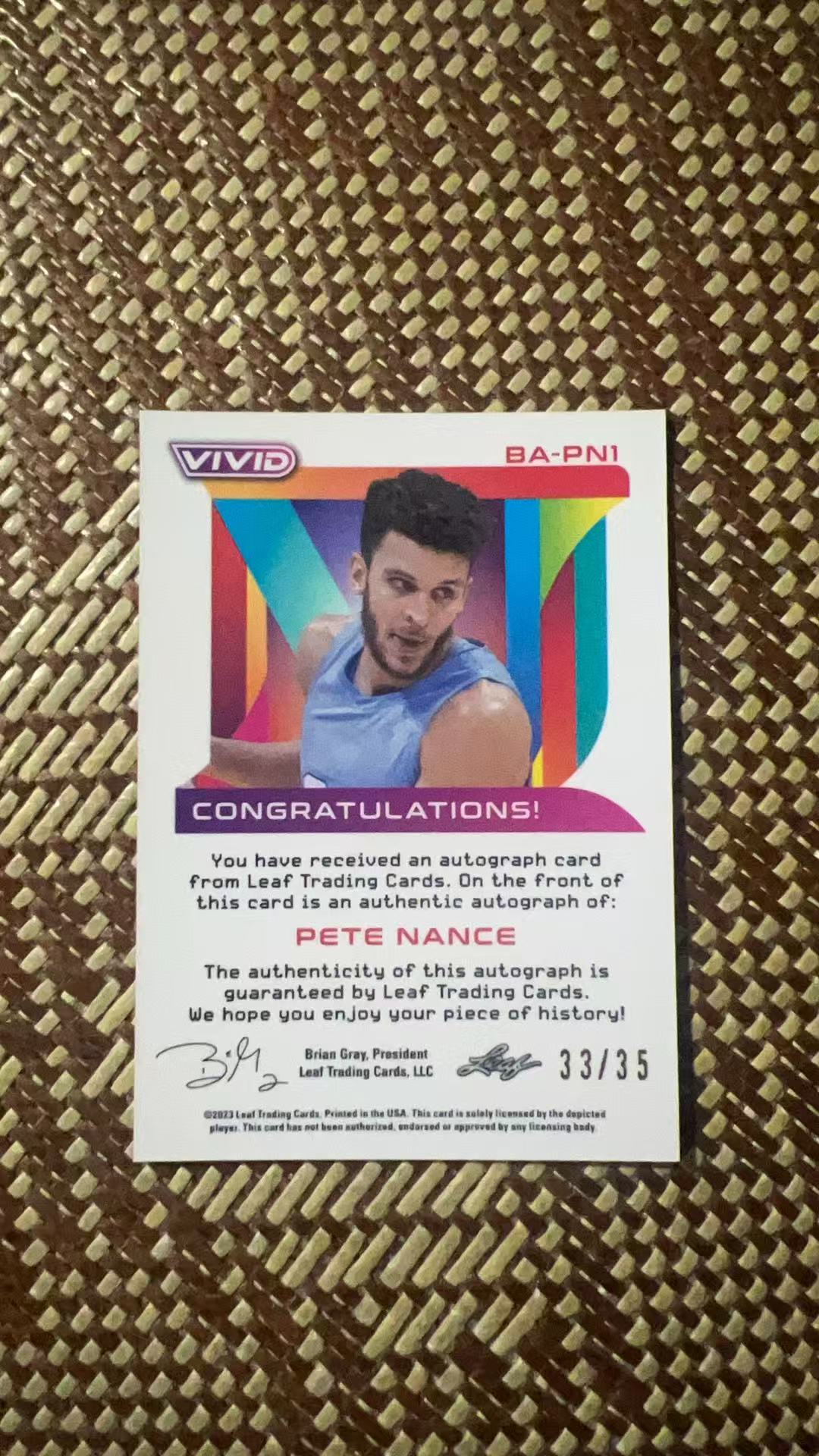 2023 Leaf leaf Pete Nance RC 【狮兄拍卖】大学 Vivid 佩特 南斯 签字 贴签 红折 折射 35编 新秀【世杰】卡品如图