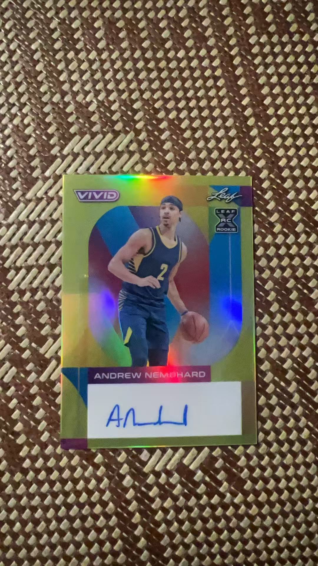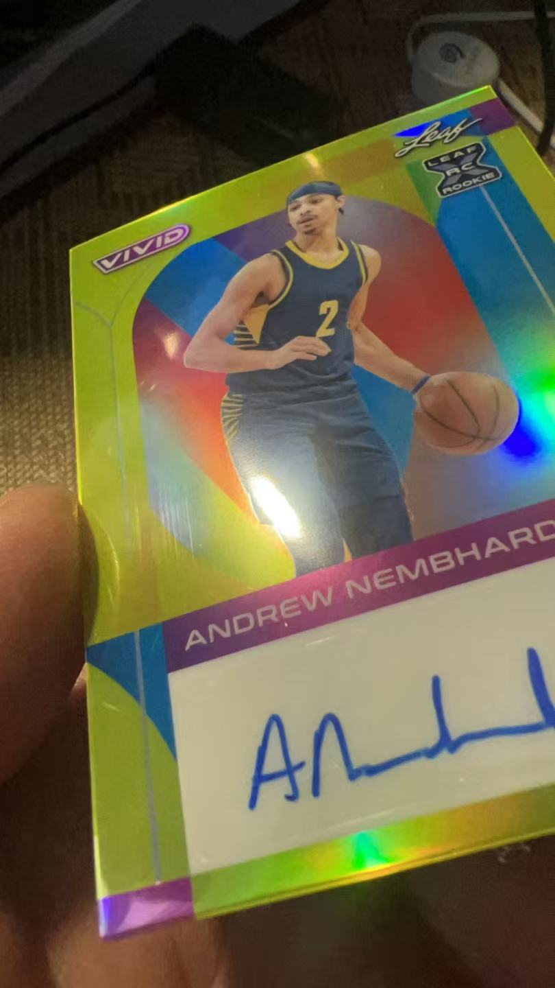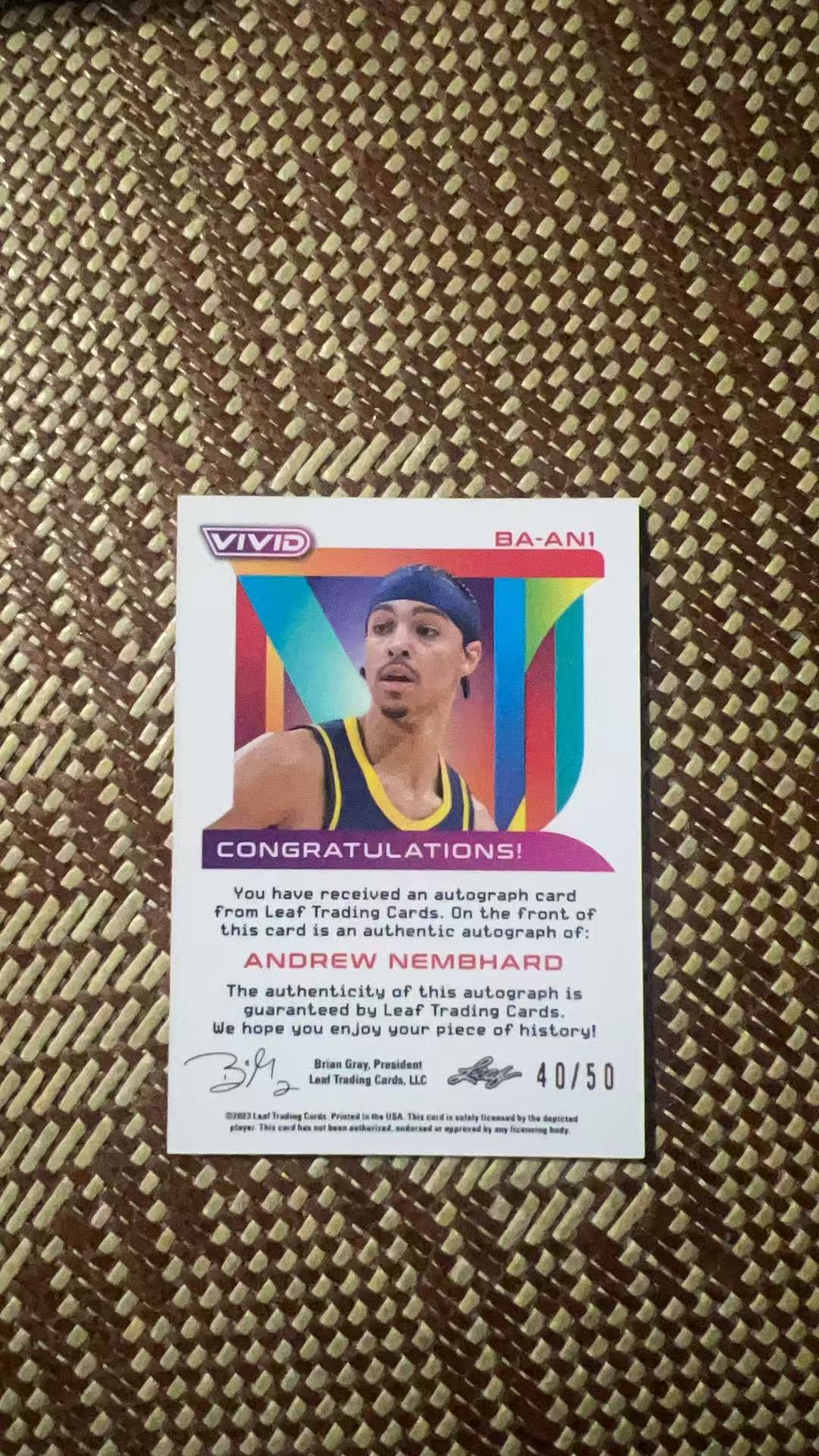 2023 Leaf leaf Andrew Nembhard RC 【狮兄拍卖】大学 Vivid 安德鲁 内姆布哈德 签字 贴签 金折 折射 50编 新秀【世杰】卡品如图