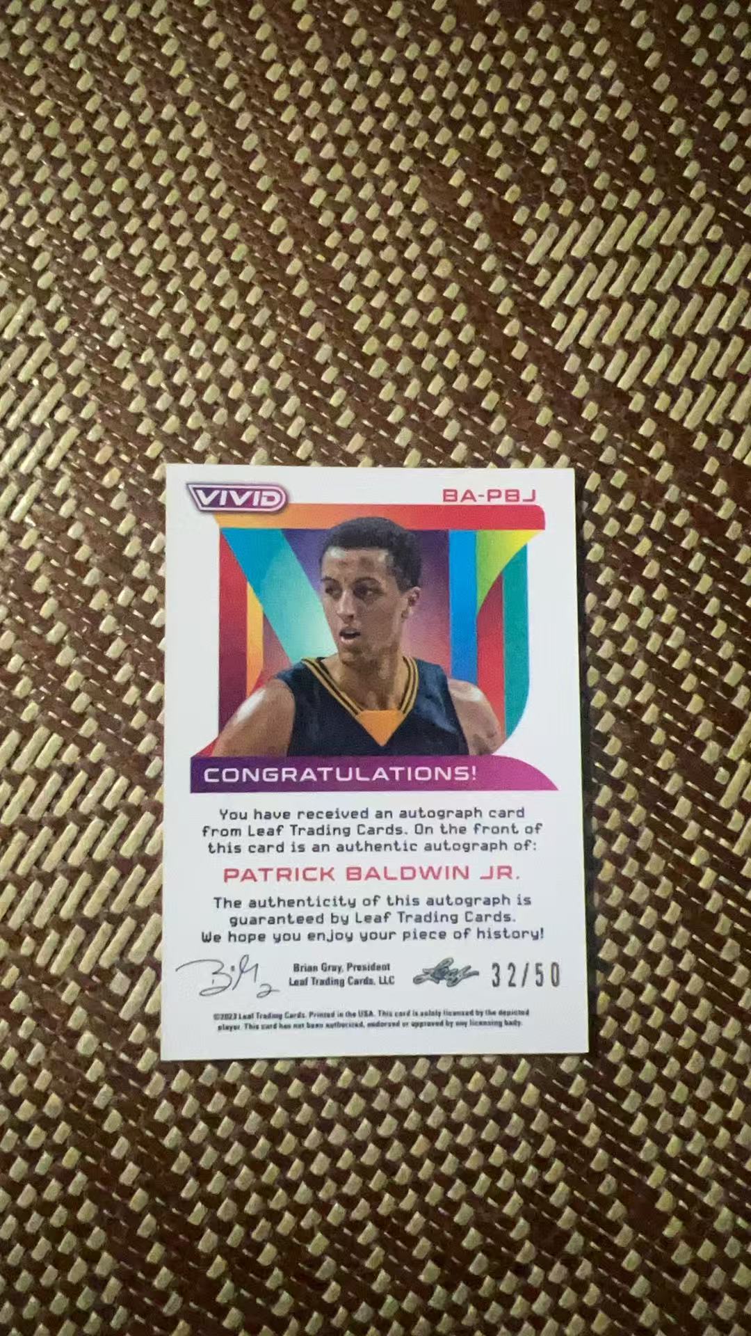 2023 Leaf leaf Patrick Baldwin Jr. RC 【狮兄拍卖】大学 Vivid 小帕特里克 鲍德温 签字 贴签 金折 折射 50编 新秀【世杰】卡品如图
