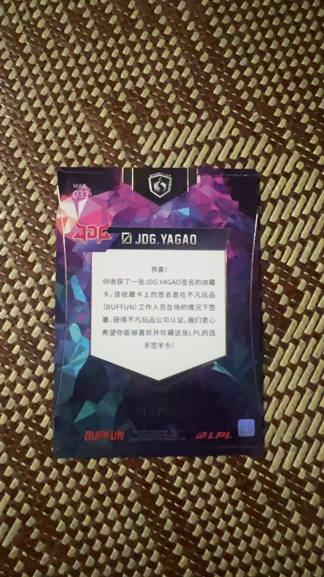 2022 Buffun LPL Yagao 【狮兄拍卖】不凡玩品 英雄联盟职业联赛 曾奇 牙膏 JDG 签字 贴签 99编【世杰】卡品如图