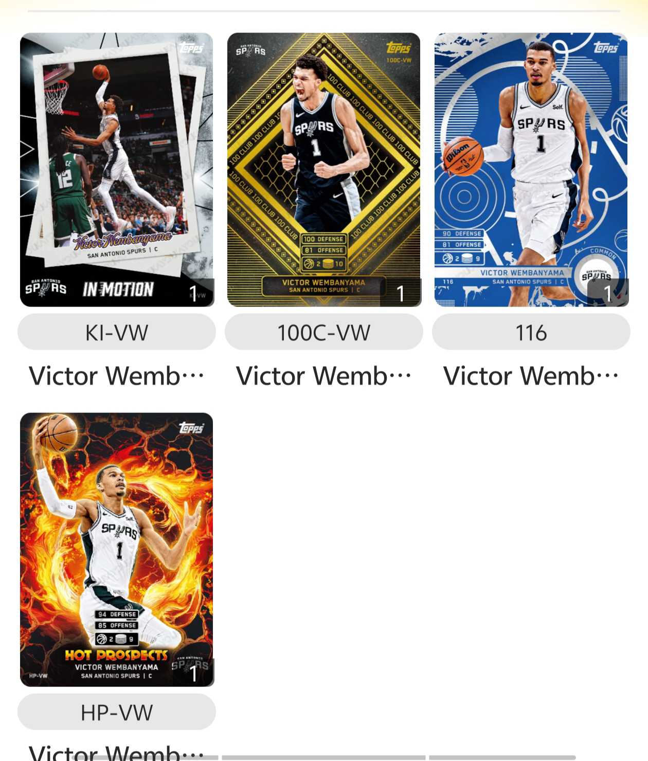 2025 Topps Match Attax NBA Victor Wembanyama 游戏版 文班亚马 马刺 3D 光栅 100 俱乐部特卡 蓝平行 火焰特卡 卡品如图
