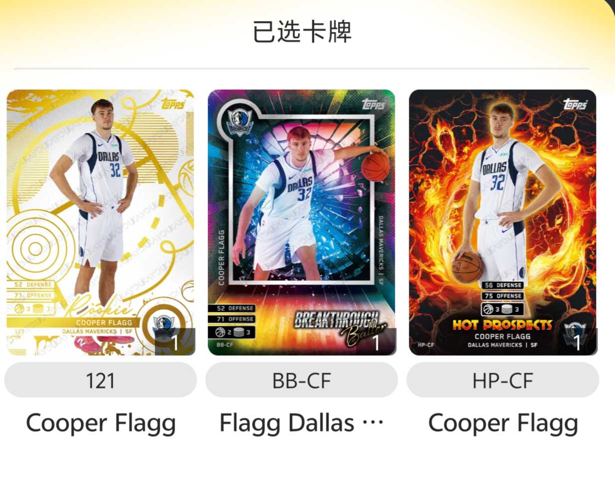 2025 Topps Match Attax NBA Cooper Flagg RC 游戏版 库珀 弗拉格 美国之子 新秀 独行侠 base 火热新秀特卡 卡品如图