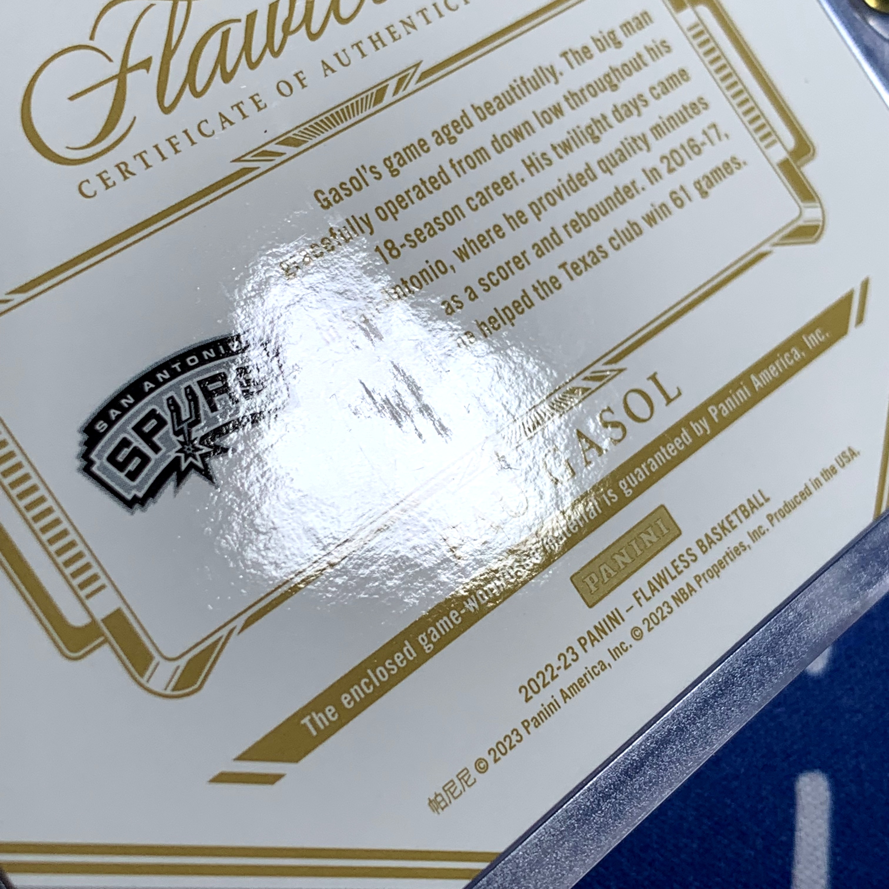 2022-23 Panini Flawless Pau Gasol 【海宝】手提 马刺 保罗加索尔 大加索尔 1/1编 1of1 一编一 湖水蓝闪 Logoman Tag 暴力Patch 轻印【刺客】