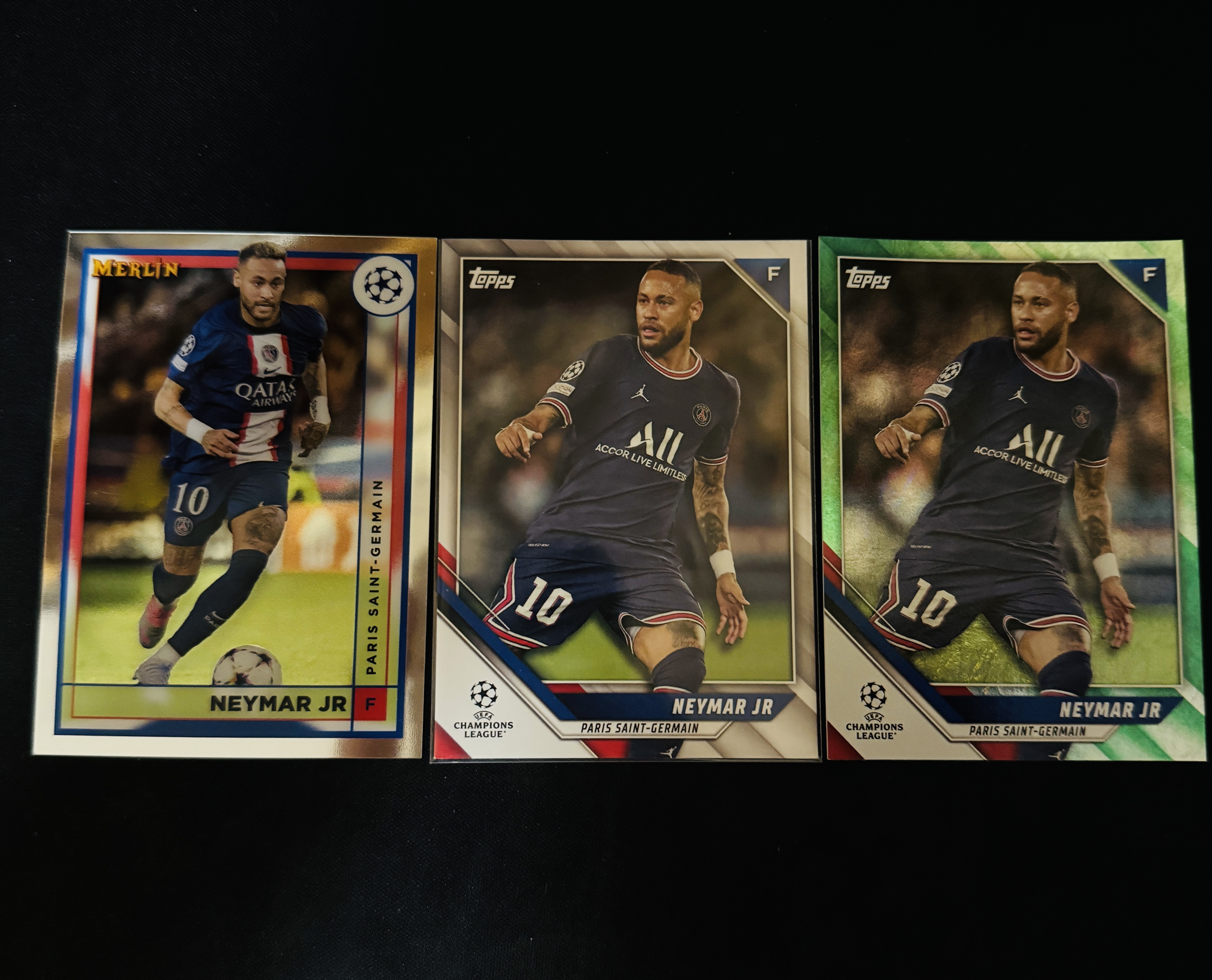 2022 Topps Merlin chrome Neymar Jr. 内马尔 巴西 巴黎 巴萨 3张打包 lot 梅林 碧玉 折射