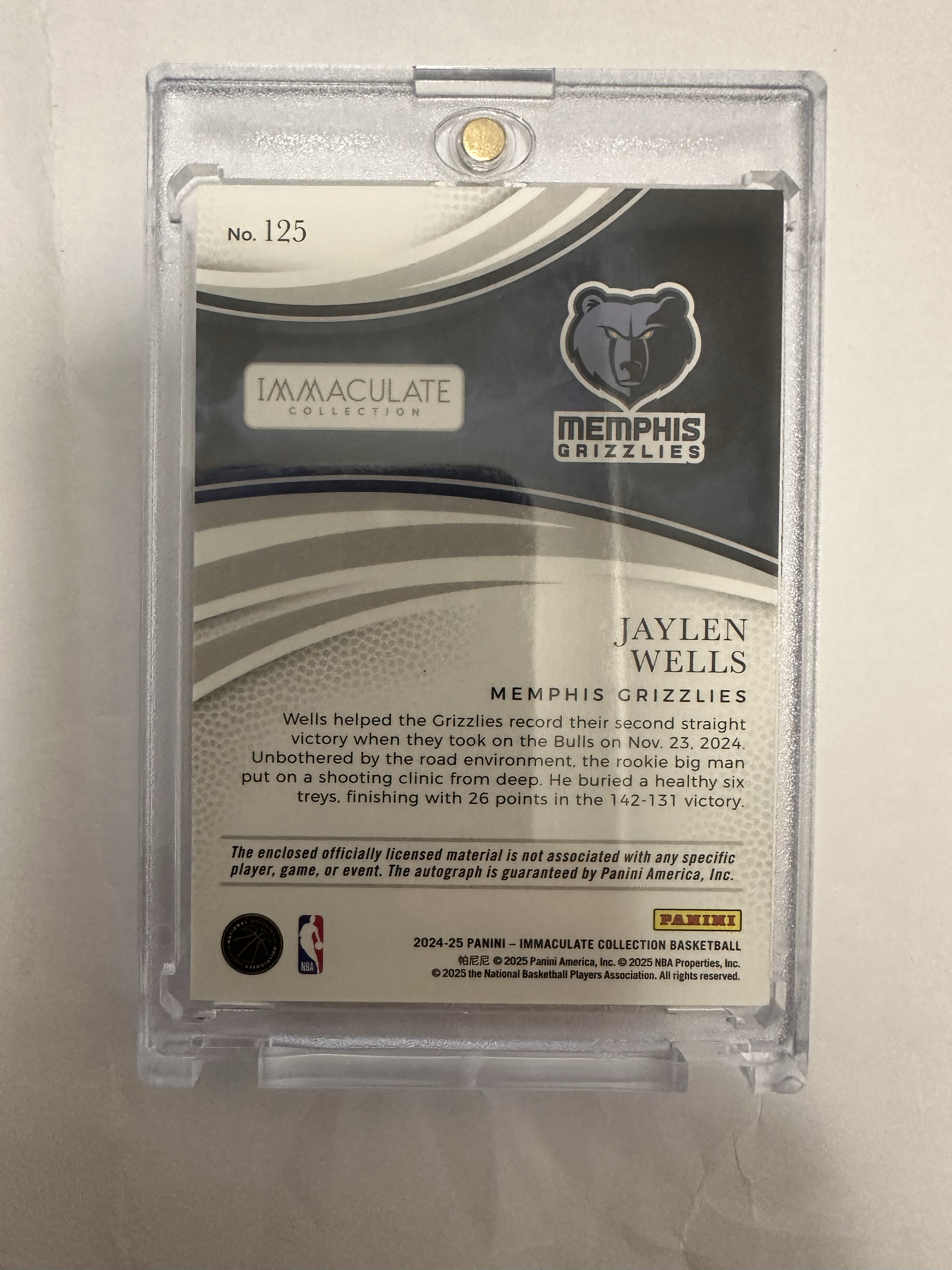 2024-25 Panini Immaculate Jaylen Wells RC 灰熊新秀 rc 复古rap 签字 卡签 24/25编 patch 韦尔斯 威尔斯 莫兰特小弟 未来可期 收藏升值必备
