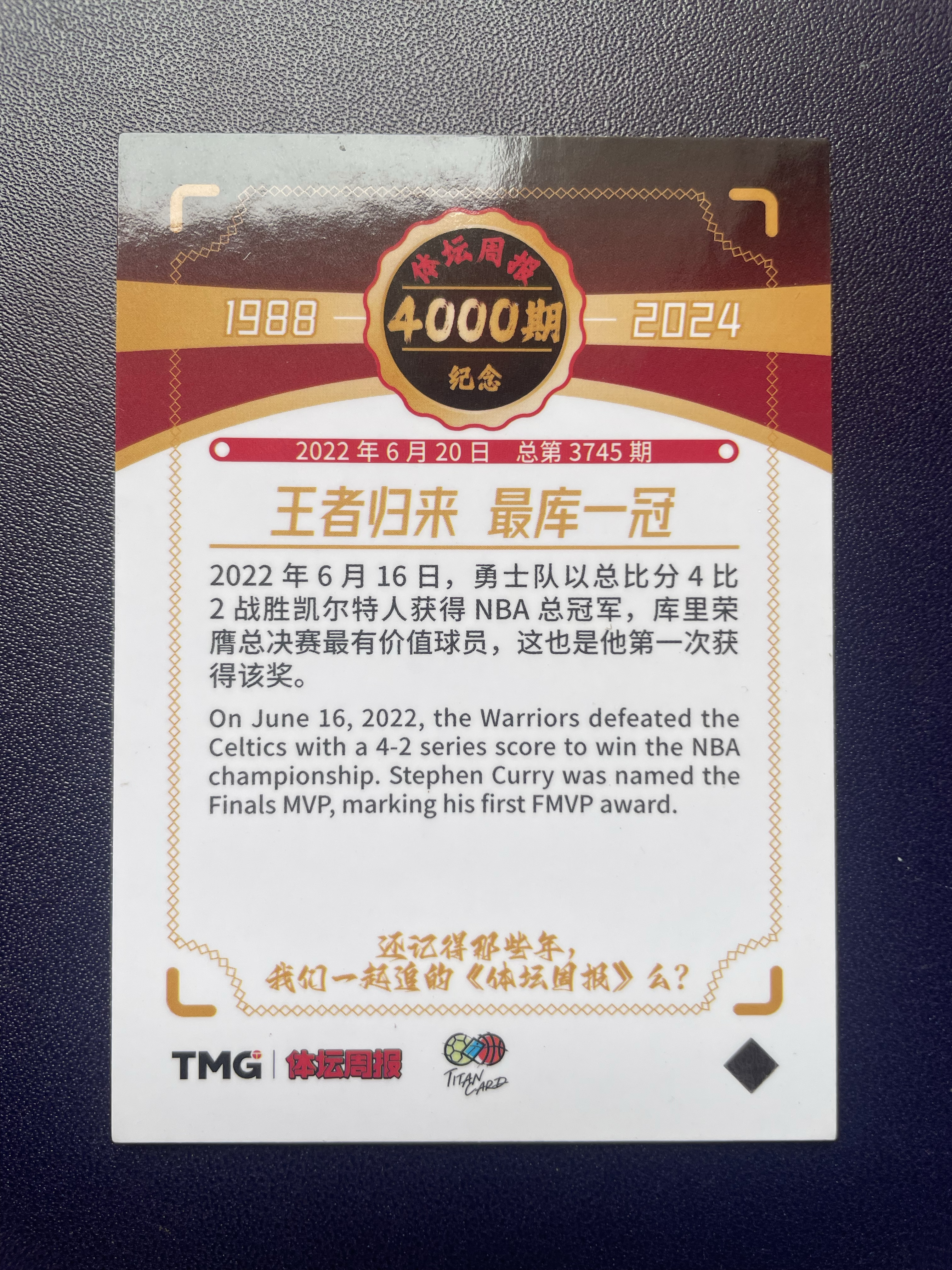 2024-25 TMG 体坛周报 Stephen Curry 斯蒂芬 库里 王者归来 最库一冠 勇气获得NBA总冠军 库里获得MVP 纪念意义非凡 细节如图不保卡品 玖玖