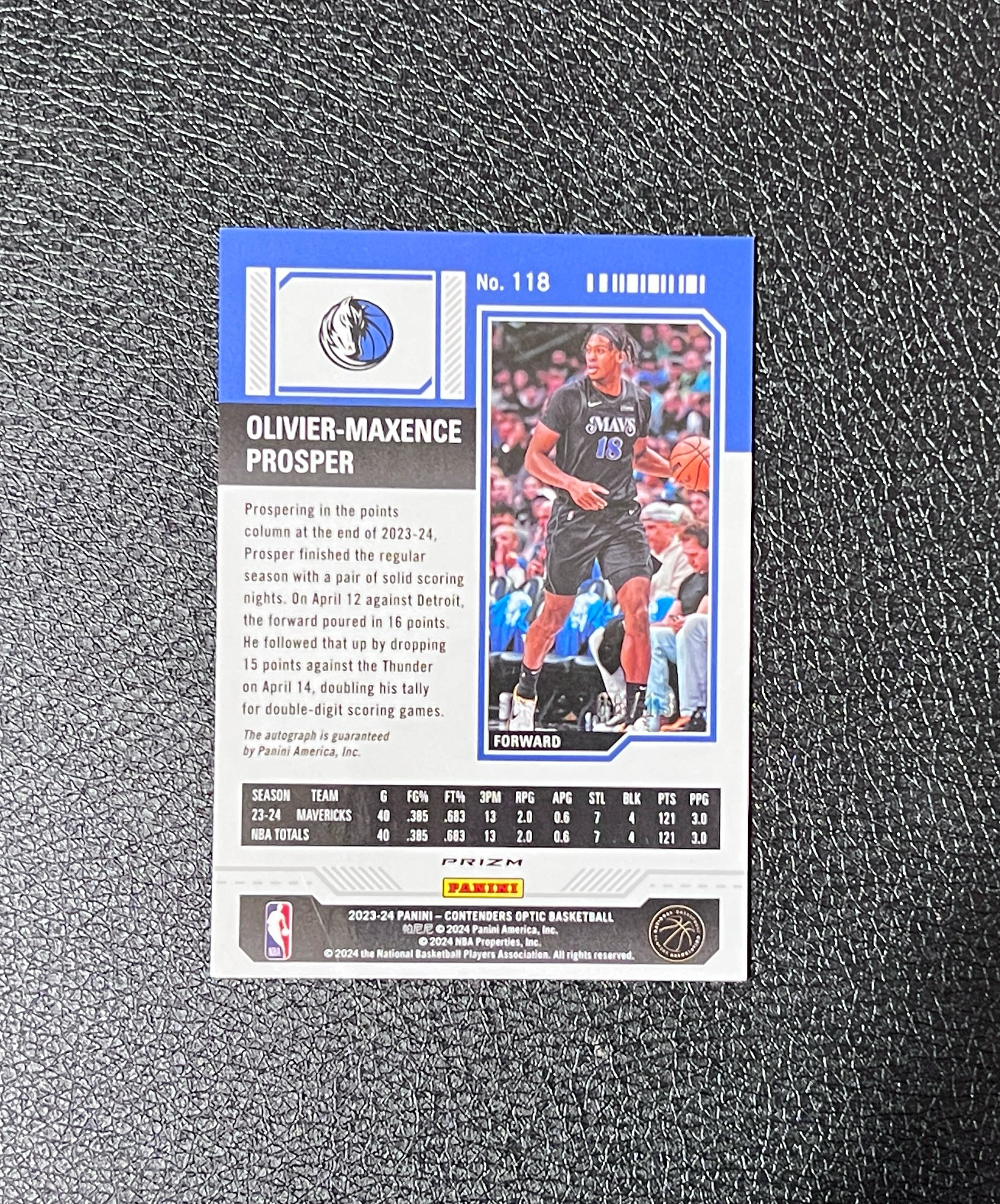 2023 Panini Contenders O. PROSPER RC 普罗斯珀 普洛斯珀 rc 新秀 球票 签字 卡签 粉折 菱形折 13编 卡品极好大概率psa10极其稀少东契奇欧文前队友