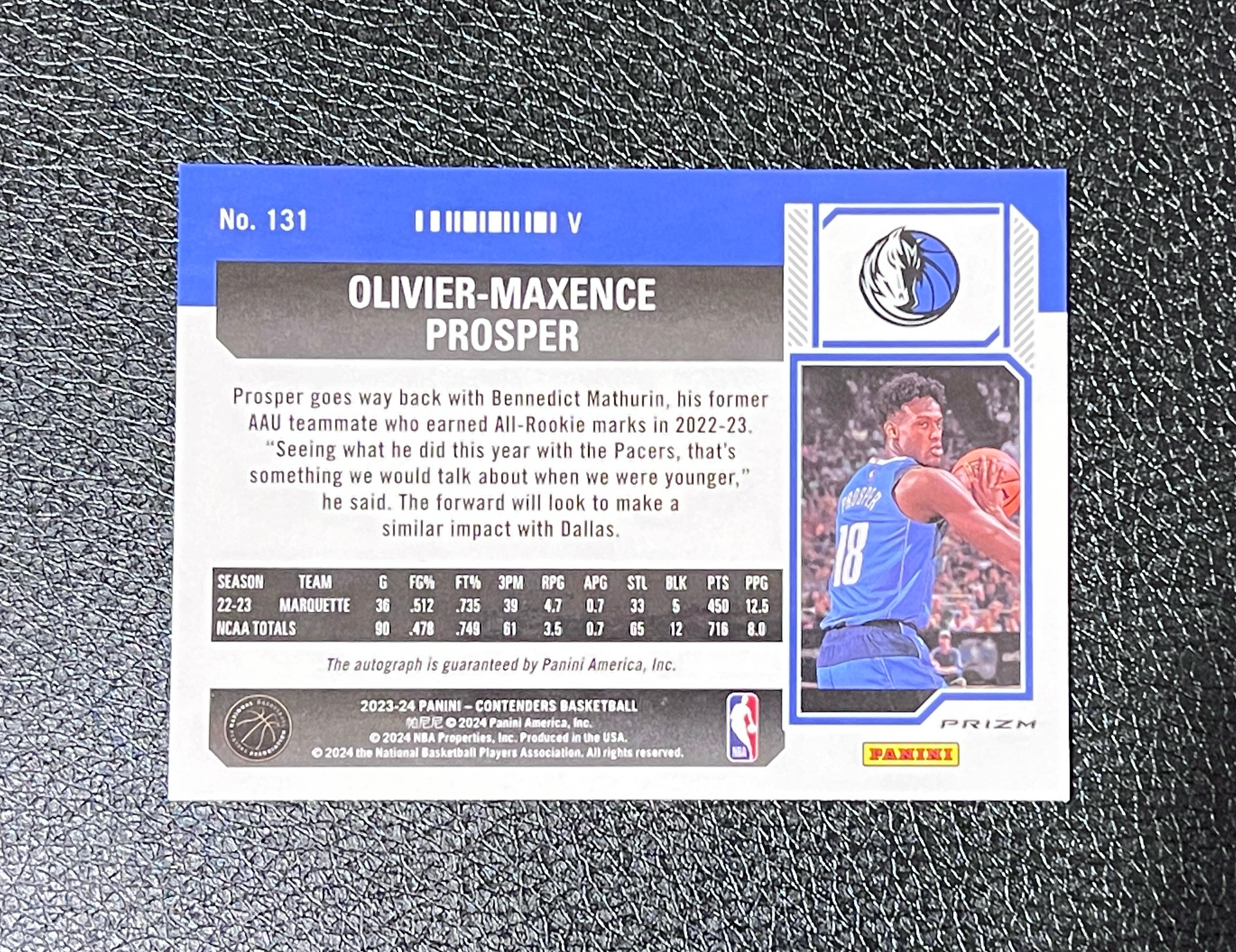 2023 Panini Contenders O. PROSPER RC 普罗斯珀 普洛斯珀 rc 新秀 球票 签字 卡签 绿shimmer 大比例 卡品好极其稀少东契奇欧文前队友