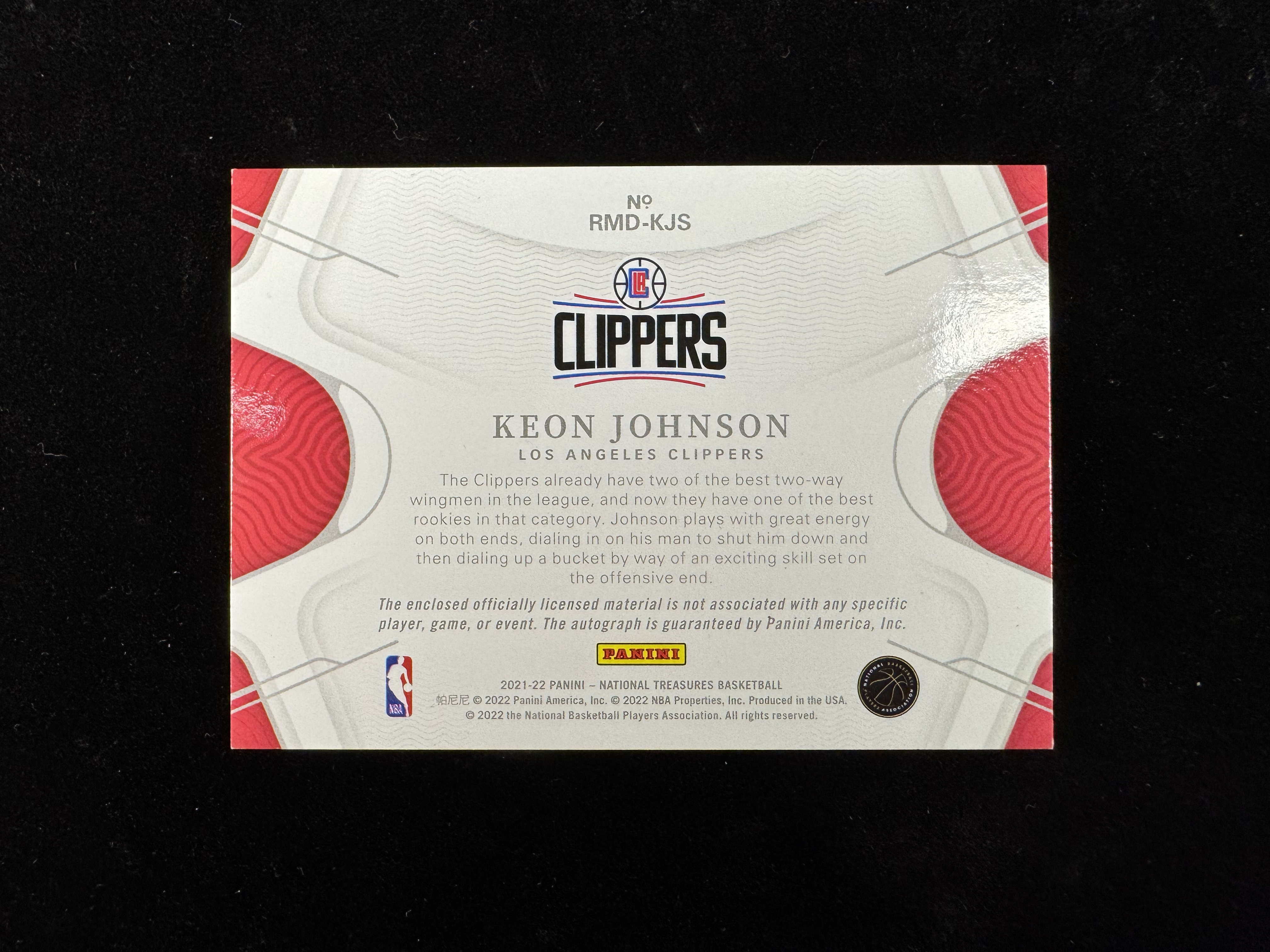 【pg免费代拍】2021-22 Panini National Treasures Keon Johnson RC 快船 基翁 肯昂 约翰逊 签字 卡签 99编 双窗物料 新秀RJA 国宝 卡品如图