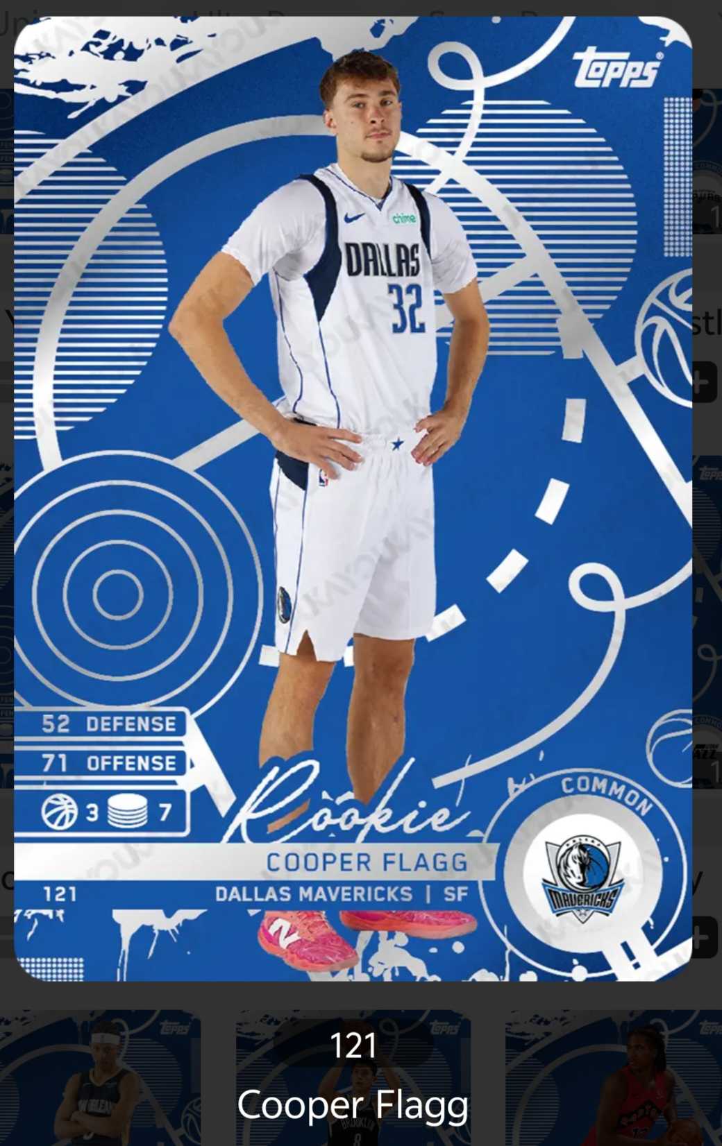 2025 Topps Match Attax NBA 游戏版 新秀RC 独行侠 库珀 弗拉格 Cooper Flagg base 蓝平行 比例 卡机直发