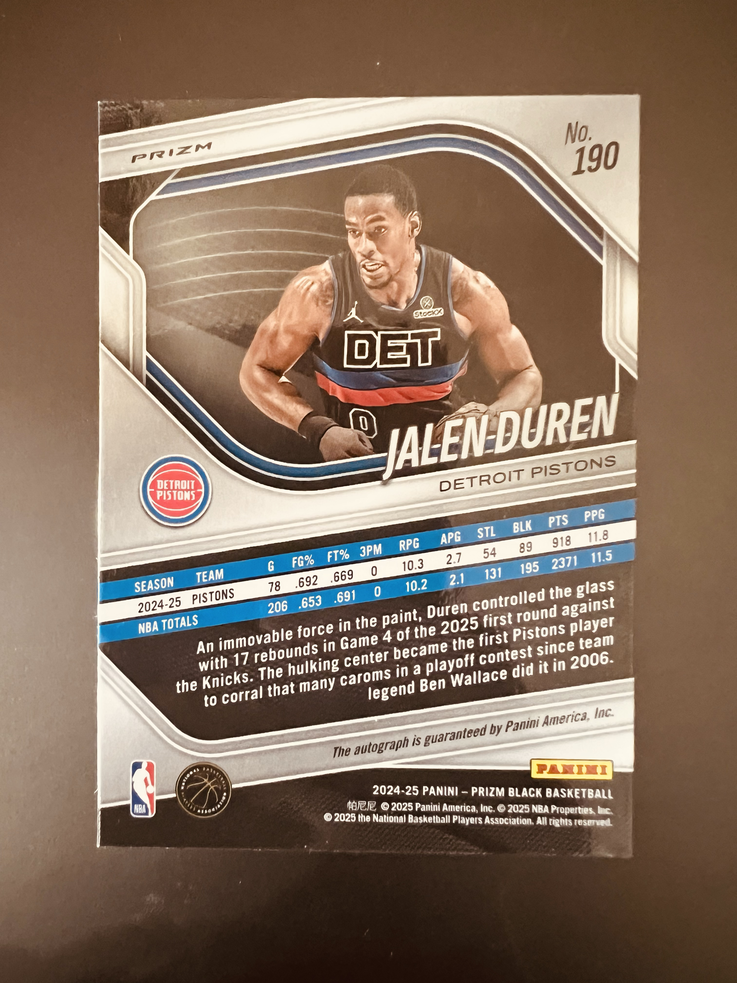 2024-25 Panini Prizm Black Jalen Duren pz 活塞 杰伦 杜伦 渡轮 折射 签字 银折 凑套 收藏必备