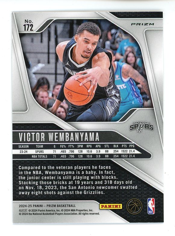 2024-25 Panini Prizm Basketball Victor Wembanyama Base Silver Prizm