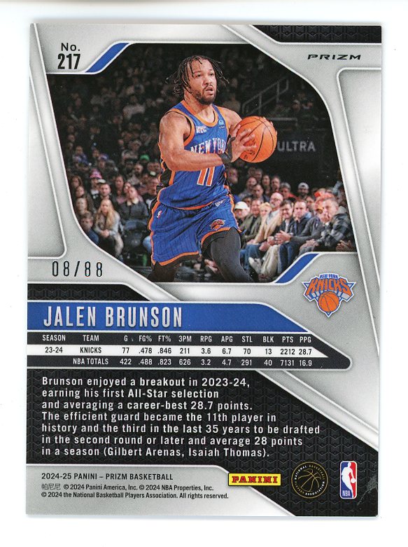 2024-25 Panini Prizm Basketball Jalen Brunson Base Choice Red Prizm #'ed 08/88