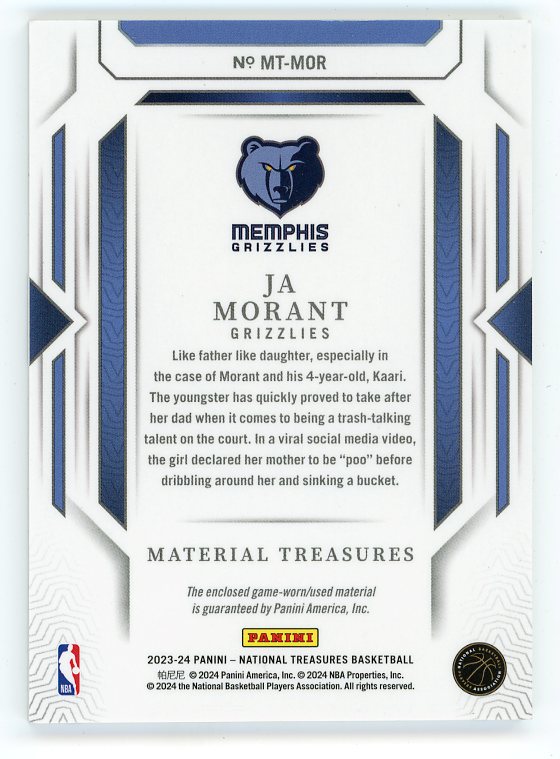 2023-24 Panini National Treasures Basketball Ja Morant Materials Treasures Jersey #'ed 98/99