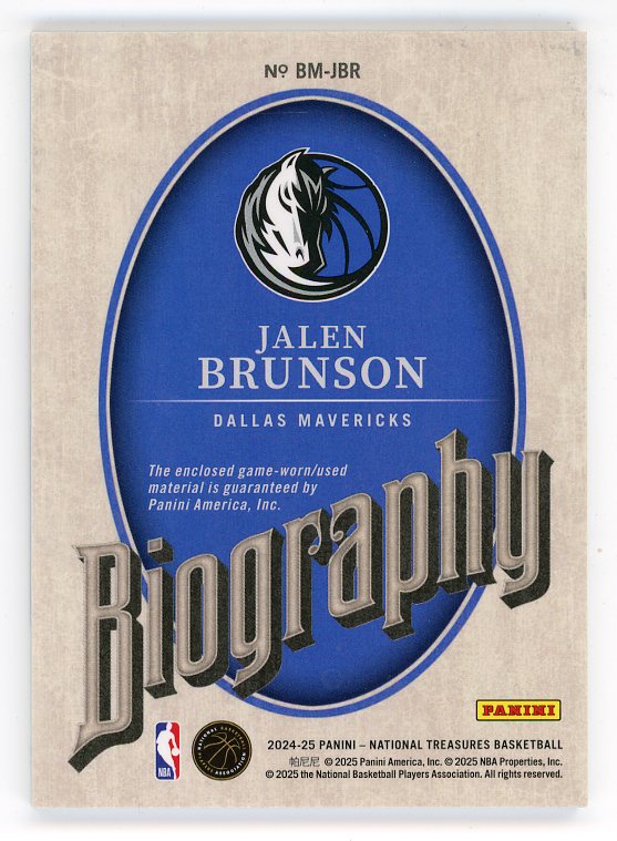 2024-25 Panini National Treasures Basketball Jalen Brunson Biography Materials Jersey #'ed 24/99