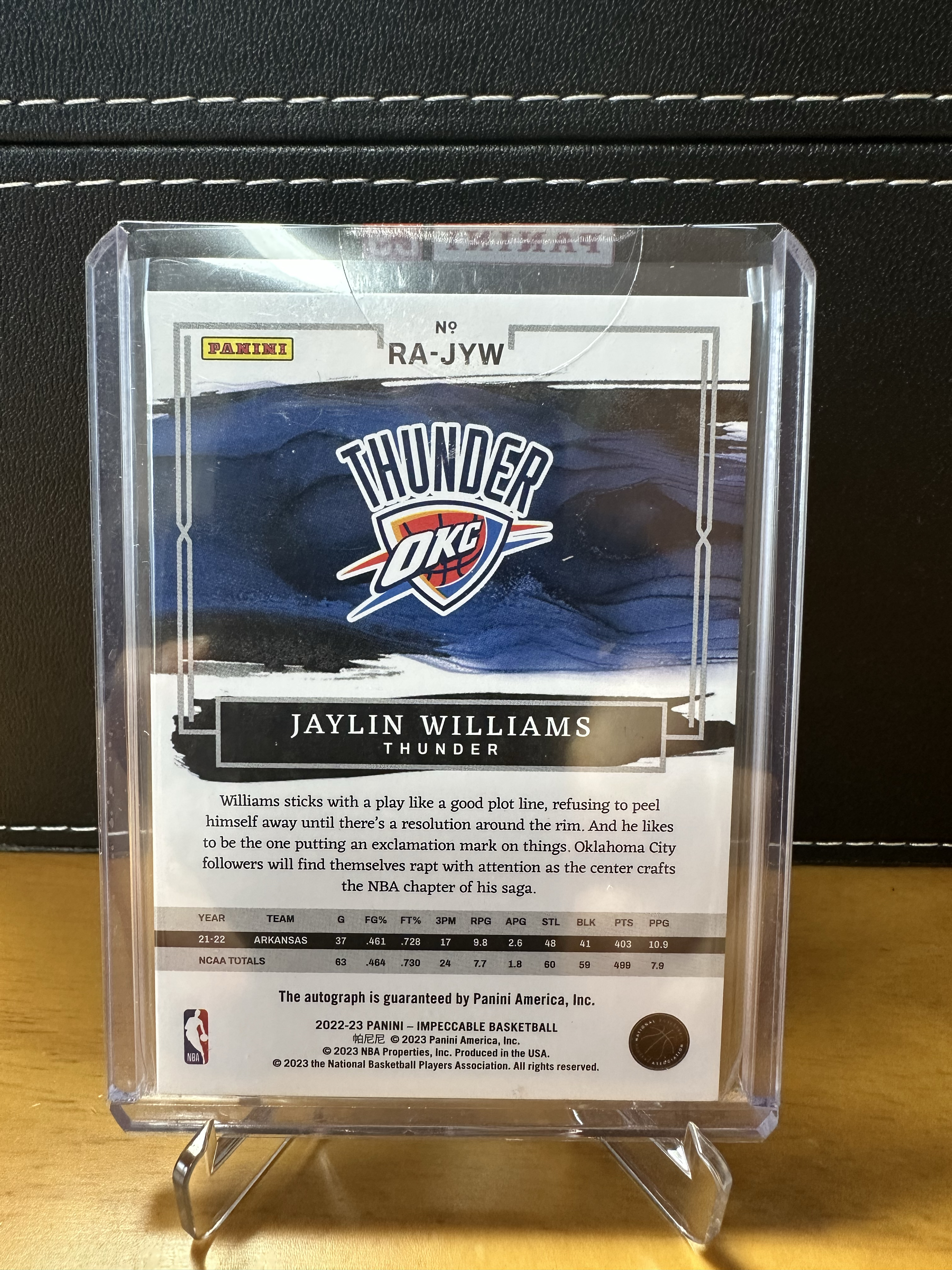 2023 Panini Impeccable Jaylin Williams RC 2022-23 小真金 新秀RC 杰林 威廉姆斯 雷霆 卡签签字 17/99编