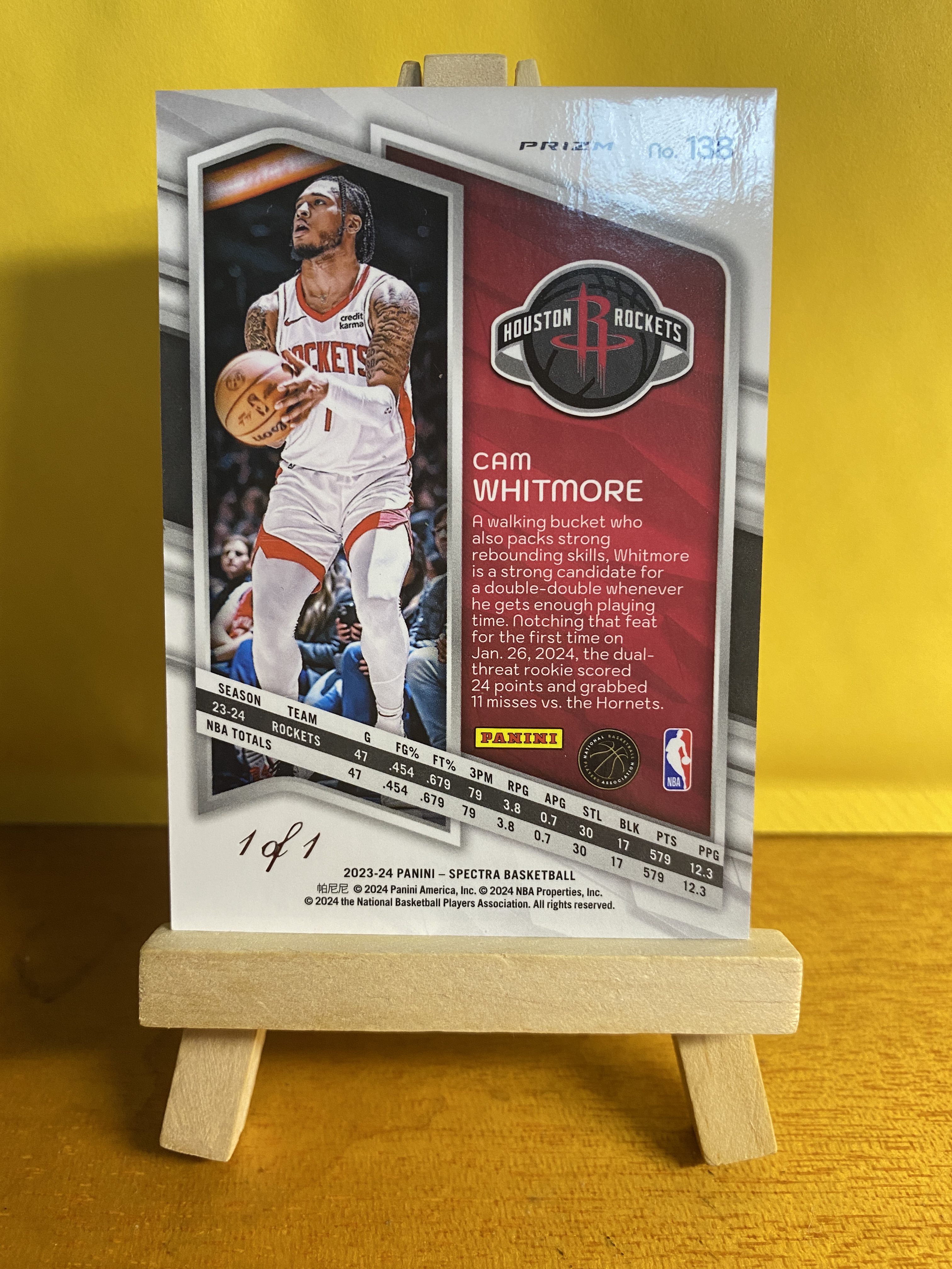 2023-24 Panini Spectra Cam Whitmore RC 光谱 火箭 新秀 卡姆 惠特摩尔 1/1编 黑折 全球一张 超级稀少 阿门前队友 卡品如图