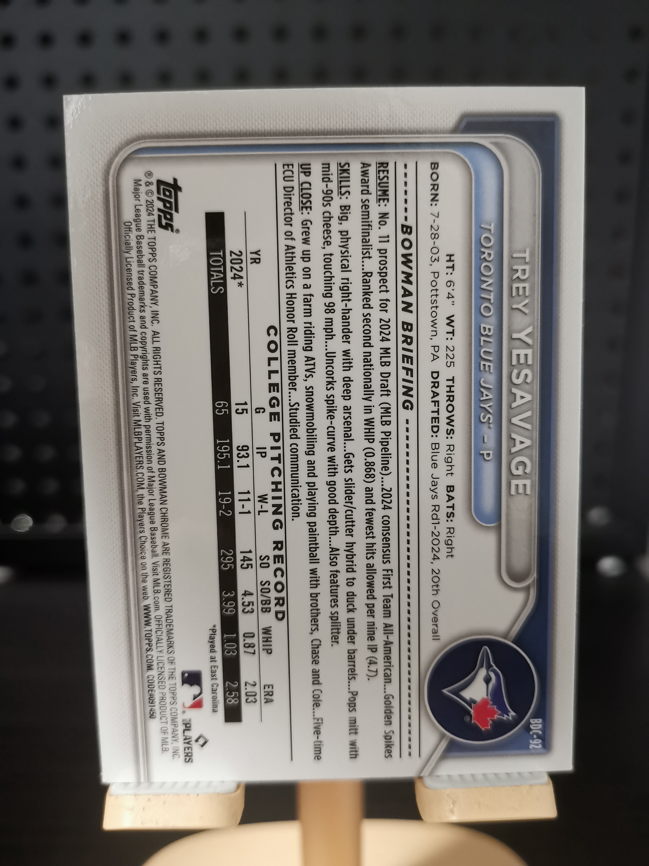 2024 Bowman Chrome 新秀 表现炸裂 Trey Yesavage 199编折射 未来巨星  已上大联盟  收藏凑套必备 实卡精美 卡品如图 出价既认可当前价格