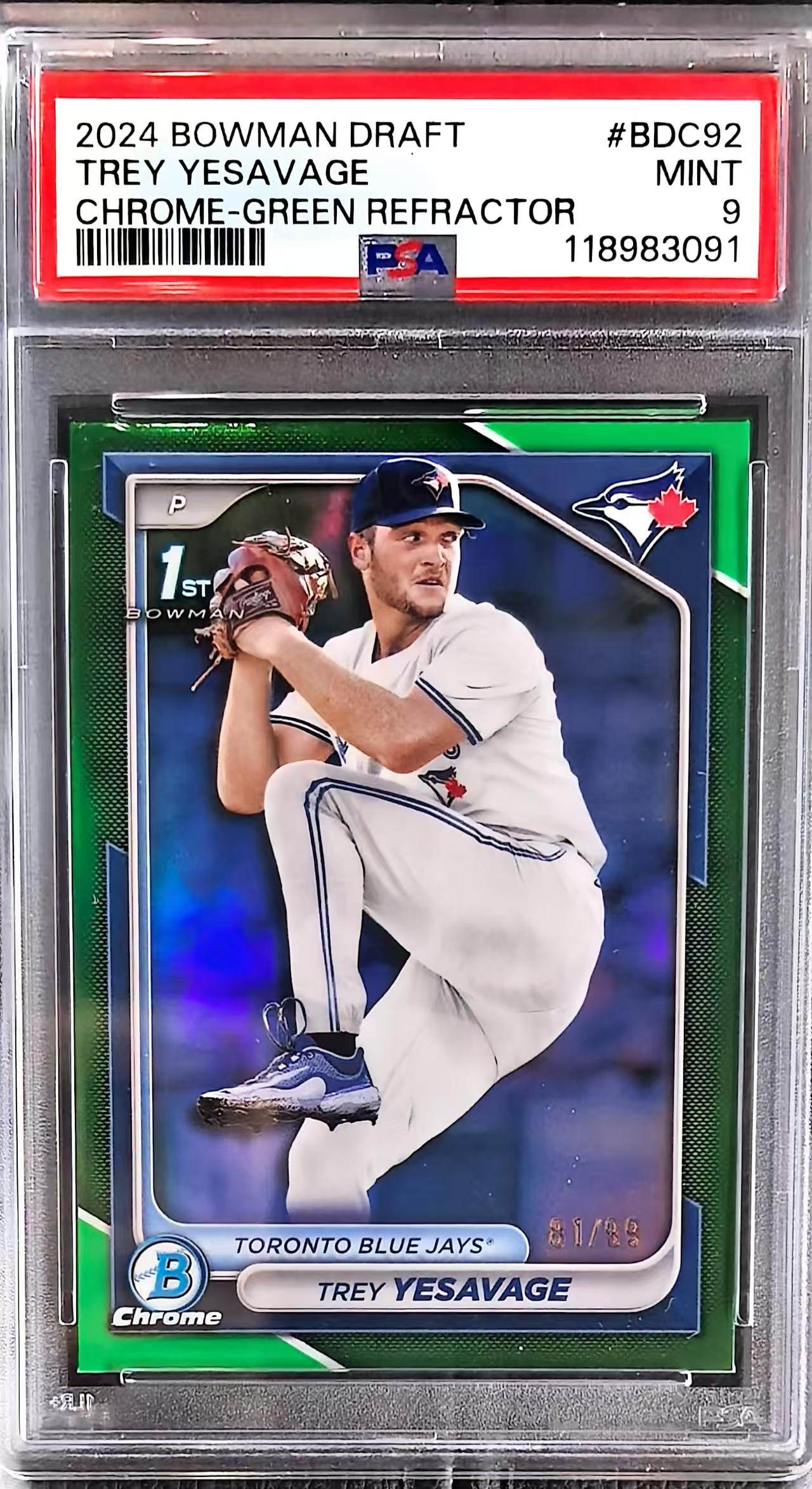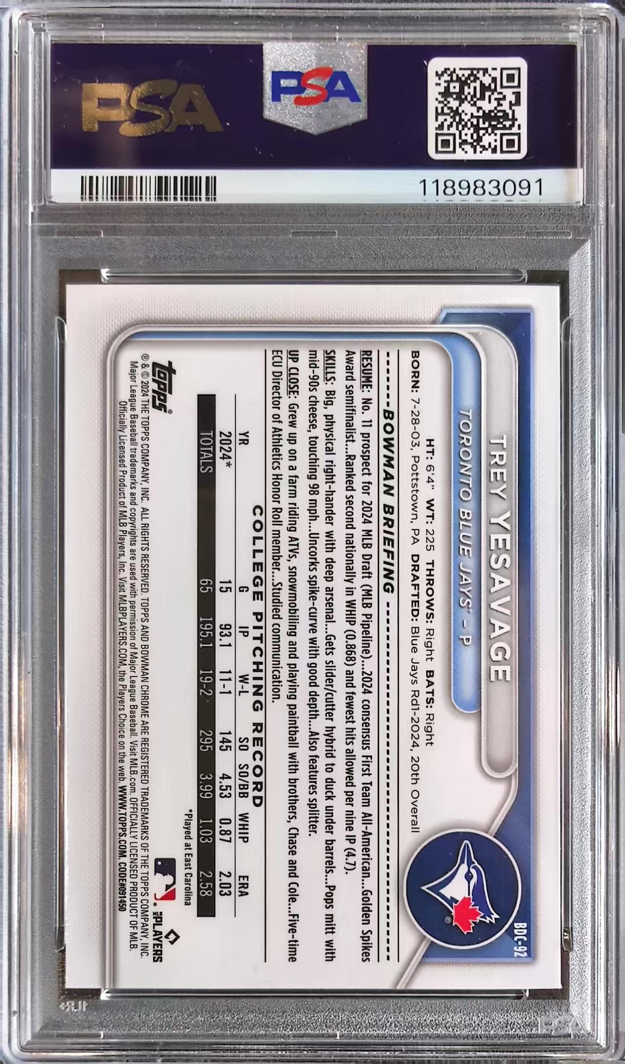 2024 Bowman Chrome 新秀 表现炸裂 Trey Yesavage 99编折射 psa 9分 蓝鸟 未来巨星  已上大联盟  收藏凑套必备 实卡精美 卡品如图 出价既认可当前价格