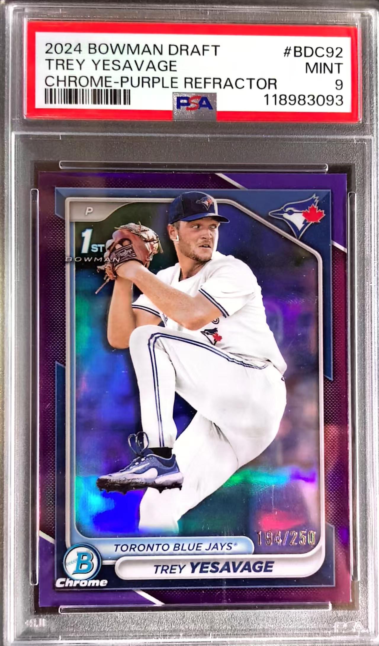 2024 Bowman Chrome 新秀 表现炸裂 Trey Yesavage 250编折射 psa 9分 蓝鸟 未来巨星 已上大联盟 收藏凑套必备 实卡精美 卡品如图 出价既认可当前价格