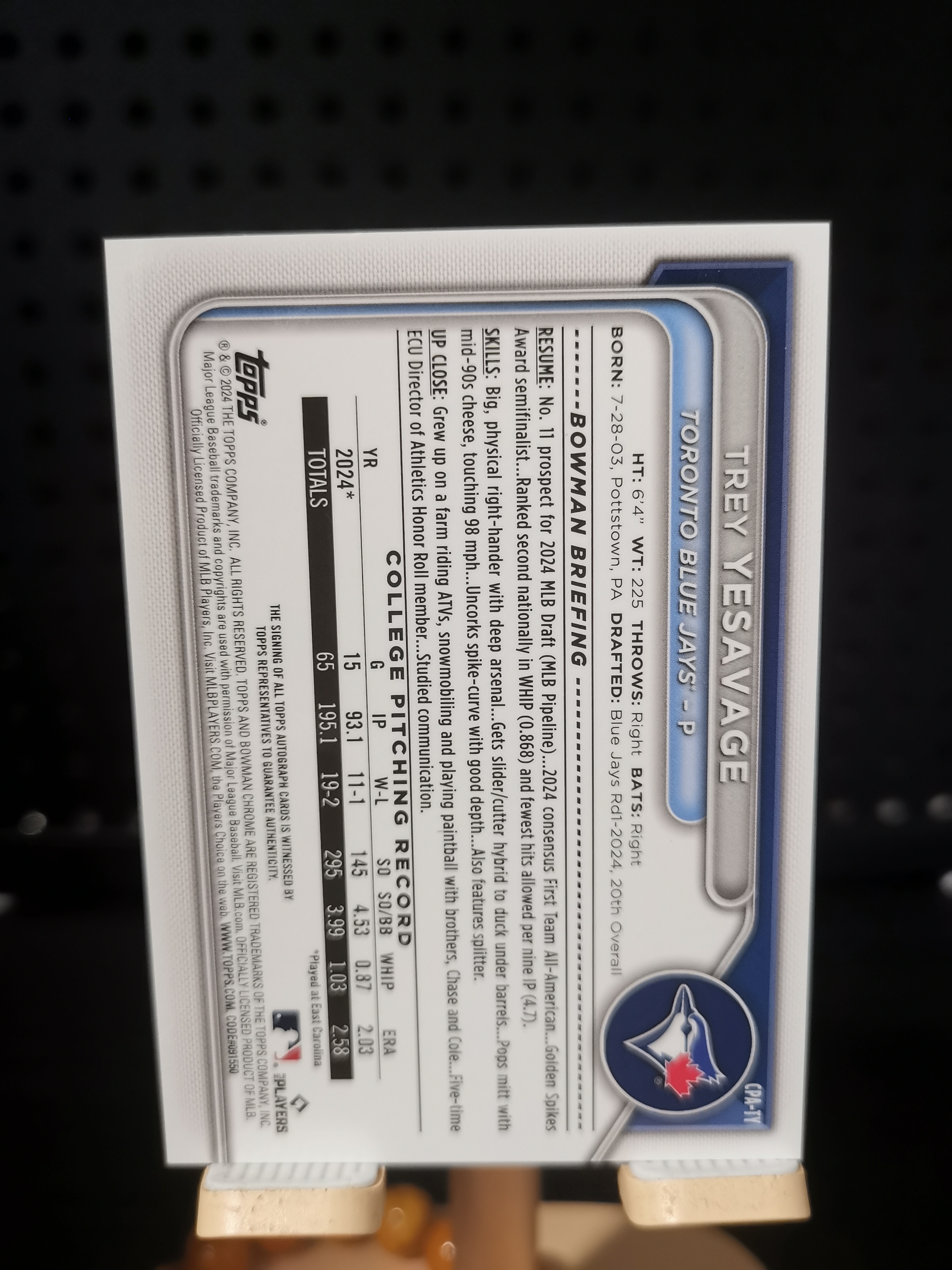 2024 Bowman Chrome 新秀 表现炸裂 Trey Yesavage 150编正蓝新秀签字 蓝鸟 未来巨星  已上大联盟  收藏凑套必备 实卡精美 卡品如图 出价既认可当前价格