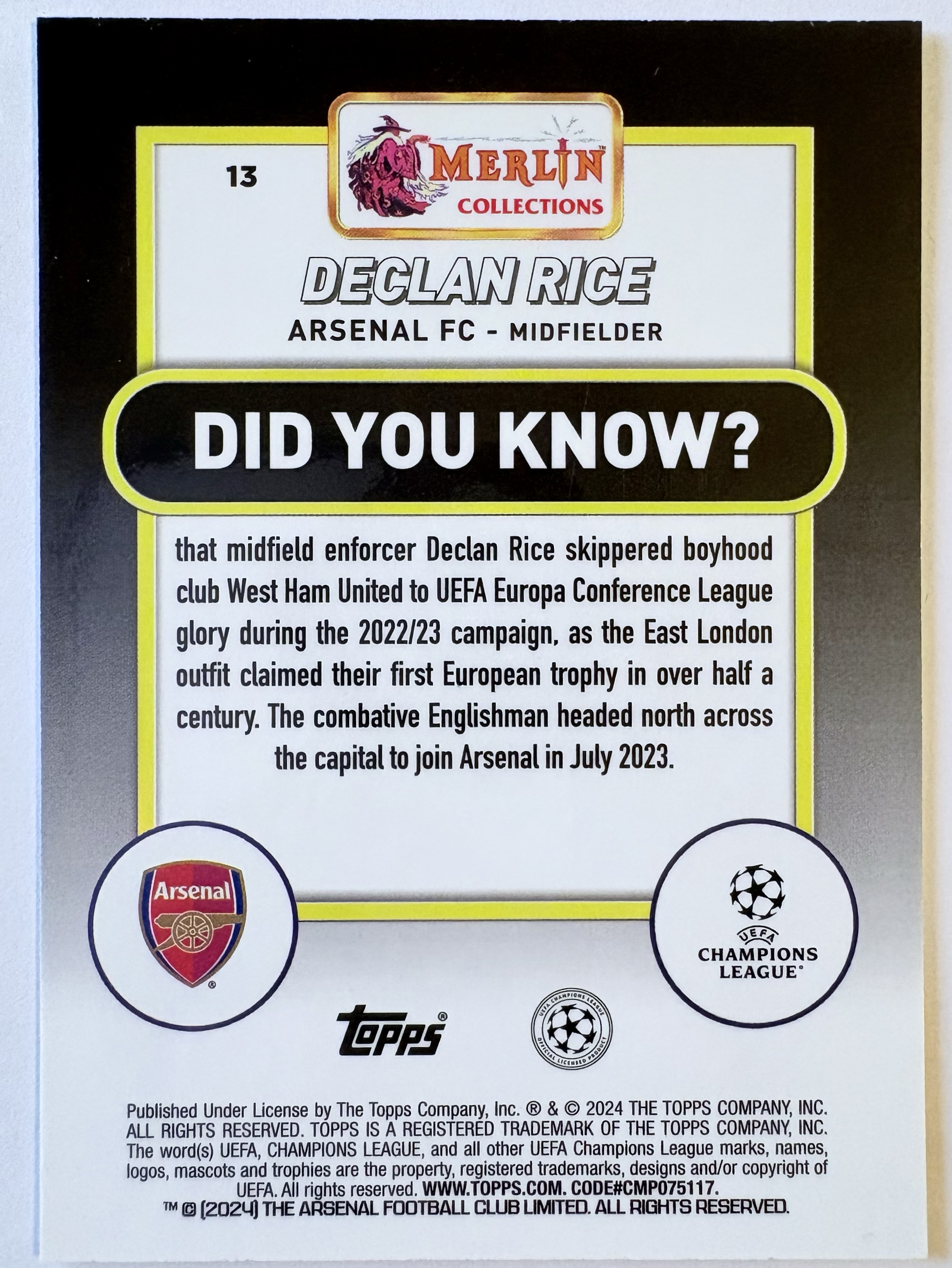 2024 Topps Merlin chrome Declan Rice 欧冠 梅林 赖斯 莱斯 阿森纳 枪手 西汉姆联 英格兰 青折 199编 世界波专业户 卡品如图 人迷队迷专收