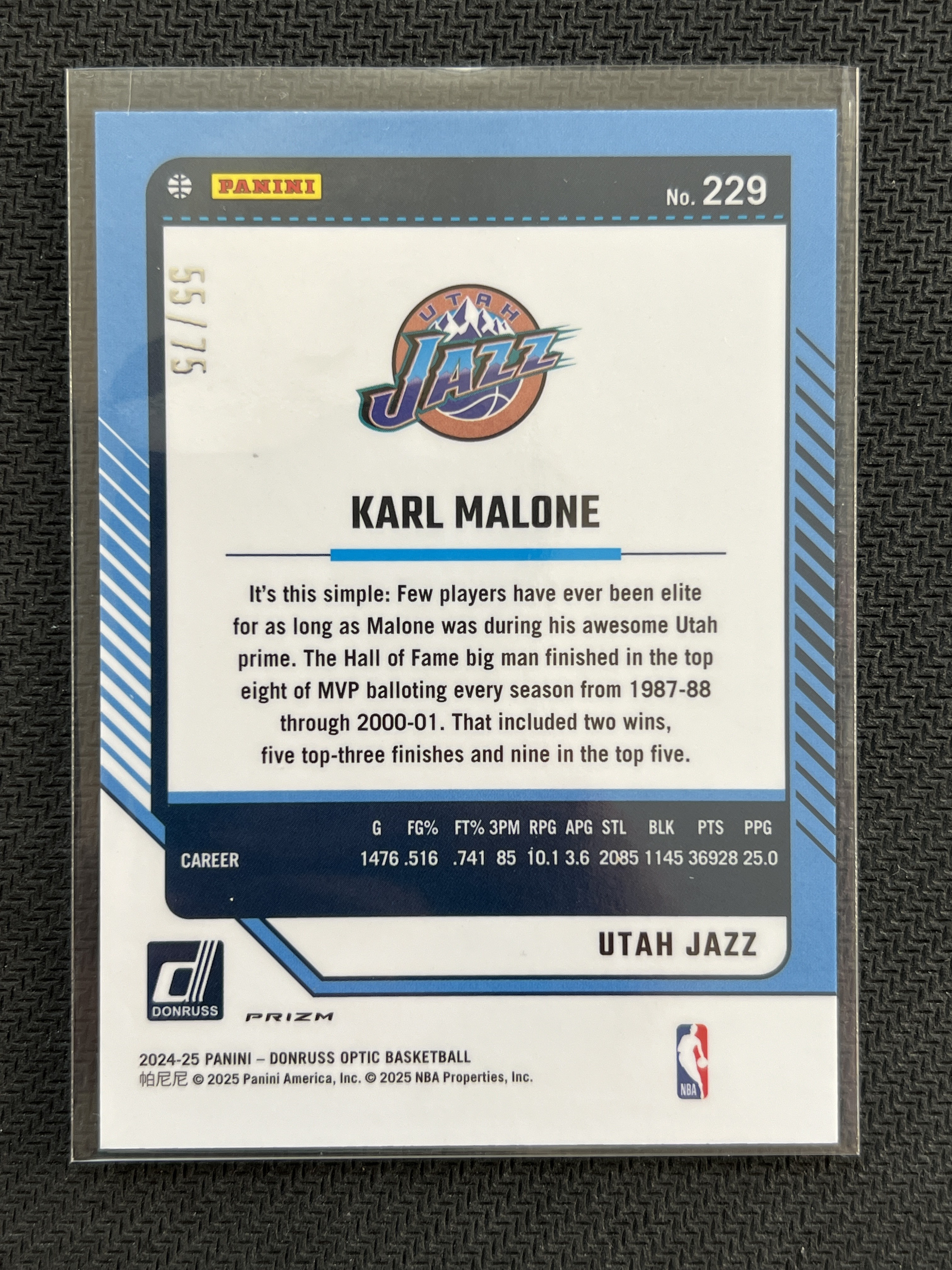 2024-25 Panini Donruss Optic Karl Malone 杜蕾斯 Op 爵士 传奇 卡尔 马龙 邮差 75编 黑金折 折射 卡品如图 【蟹Bro卡铺】