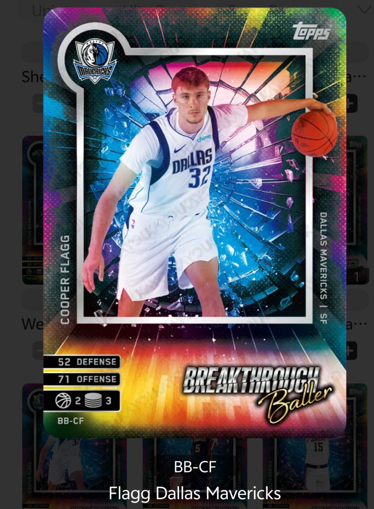 2025 Topps Match Attax NBA Cooper Flagg 游戏版 库珀 弗拉格 美国之子 新秀 独行侠 杨瀚森 火热新秀特卡 卡品如图
