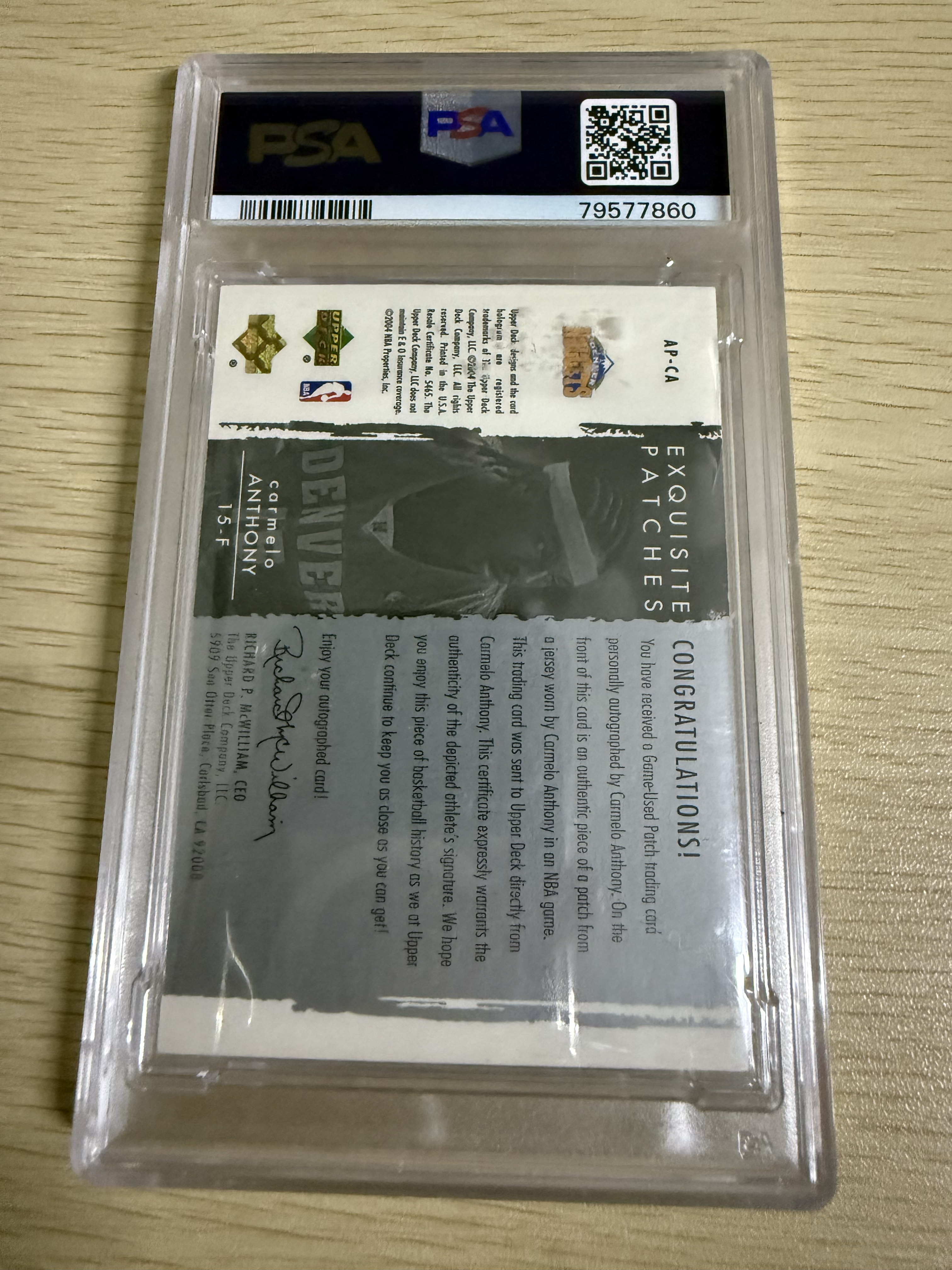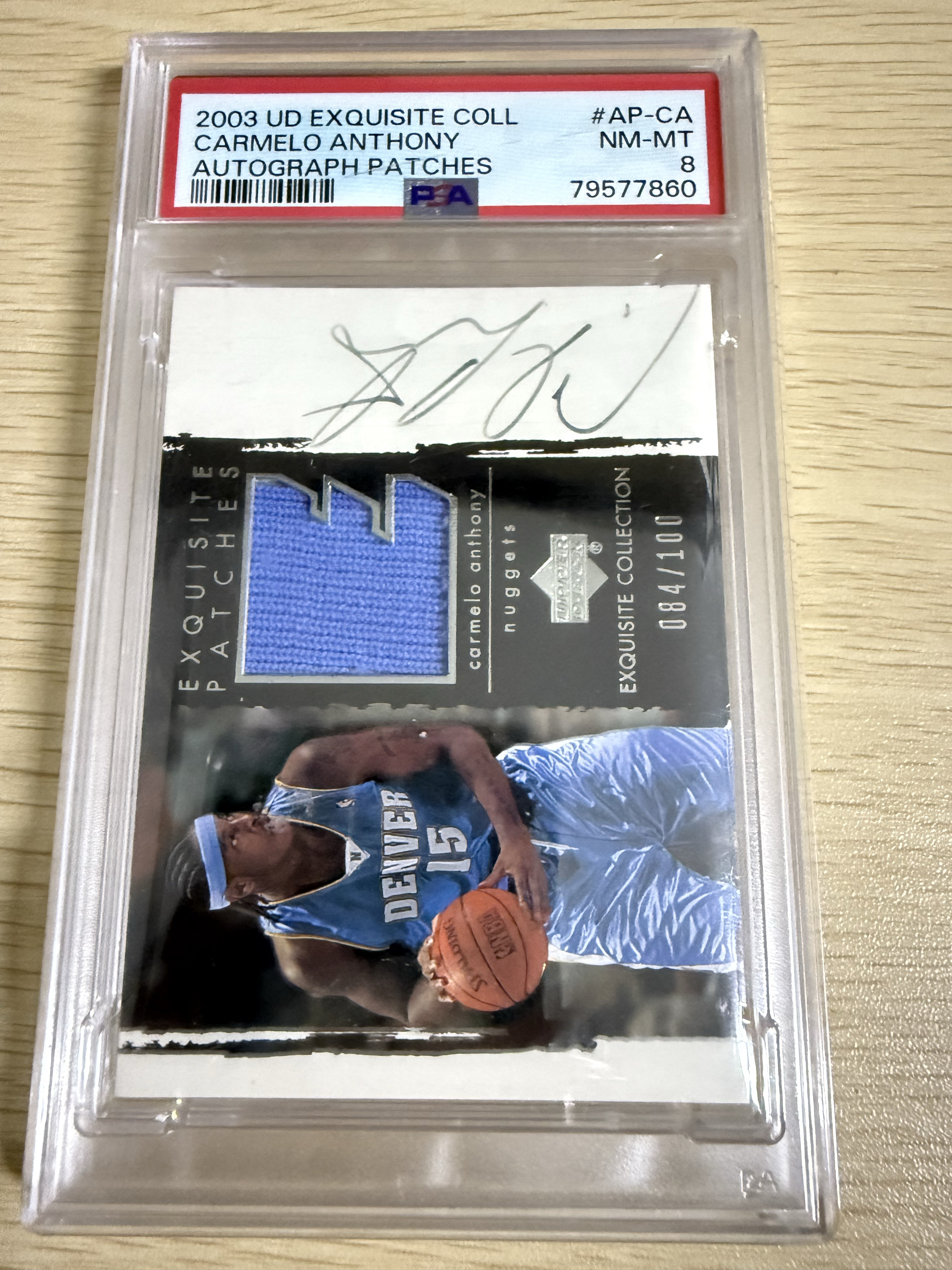 2003 Upper Deck UD EXQUISITE COLLECTION AUTOGRAPH PATCHES Carmelo Anthony RC 卡梅隆 安东尼 甜瓜 卡签 100编 PSA8