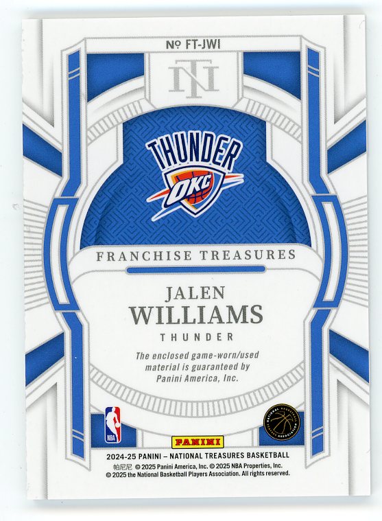 2024-25 Panini National Treasures Basketball Jalen Williams Franchise Treasures Jersey #'ed 61/99